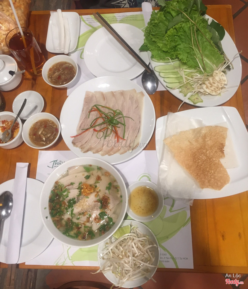 7.0Thủy & Mộc - Ẩm Thực Miền TrungDa hai đầu heo cuốn bánh tráng ^^ Bữa mình có ghé quán ăn cùng với bạn do được giới thiệu có món lạ là heo hai đầu da, phần này 89k, cũng khá nhiều thịt, cuốn với rau, một loại bánh thay cho bún, khế, chuối,... bẻ vụn và rắc bánh đa cuốn lại, chấm mắm cá ăn ngon ^^ Ngoài ra thì mình đánh giá cao món bánh bột lọc ở đây, 1 phần 32k 8 cái nhưng nhân nêm ngon, có cả thịt và tôm, nước chấm cũng ngon luôn. Đặc biệt là hôm đó mình đến còn được tặng 1 chai nước ép sơri cho 2 người, mà nước ép nyà mình thấy là nguyên chất (k hề có thêm nước), quán còn tận tình ở chỗ có sẵn nước đường nếu thấy chua thì thêm vào, giá bình thường là 32k 1 chai. Chè bánh lọt lá dứa ở đây ăn ngon, thơm, mà không bị quá ngọt (kết nhất điểm này vì mình k thích ăn ngọt) Ngoài ra mình thấy menu còn 1 số món cũng đặc trưng như gỏi mít trônj, bún bò, mì quảng,... chắc bữa nào ghé lại ăn thử mì Quảng xem sao, vì thấy quán cũng chuyên về món ăn miền Trung. ...Xem thêm