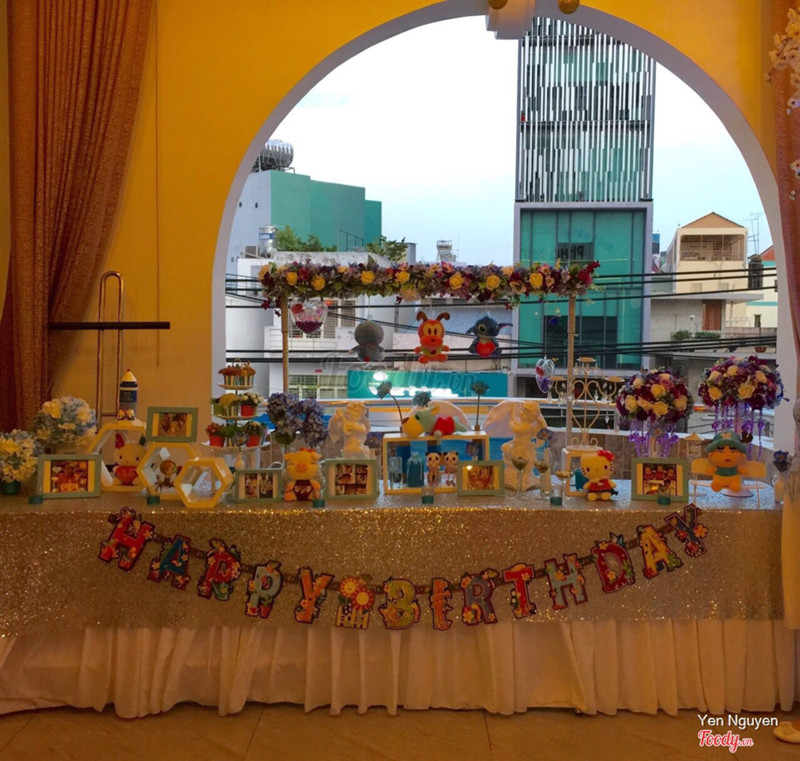 7.2Ấm cúng và sạch sẽHôm nay có dịp đi ăn thôi nôi con đầu lòng của một người em. Tiệc ở tầng 2, bàn tiệc đón khách được trang trí rất ngộ nghĩnh, cứ như phim hoạt hình Disney ;)) Món đầu là món súp cua ( mình quên không chụp lại), ăn vừa miệng và thịt cua tươi. Món gỏi tôm và đọt dừa cũng rất ngon, tôm sú tươi dai và con size lớn nghen. Ăn kèm với bánh phồng tôm cũng rất giòn mà không nghe mùi dầu mỡ. Nước chấm pha vừa, không chua. Chả giò thì nhân hơi bột, có lẽ do pha nhiều khoai môn hay sao đó nhưng ăn tàm tạm. Cơm chiên dương châu ăn ngon àh nghen, bùi bùi khoai tây và đậu hà lan. Hạt gạo dẻo mềm, không khô không ướt. Món hải sâm sốt cùng rau củ quả không được ngấm gia vị, mùi vị hải sâm hơi ngái ngái, tanh tanh ( mình không thích món này). Lẩu gà nấm thì bình thường, thịt gà sáp và dai quá. Điểm cộng là món ăn ở đây được chế biến sạch sẽ và không có cảm giác dầu mỡ nhiều. Món rau câu tráng miệng ngon không chê được, giòn vài không ngọt lắm. Điểm trừ: Tiệc thôi nôi mà cách tổ chức y chang tiệc cưới, trang hoàng sân khấu không có vẻ giành cho trẻ nhỏ vui chơi hay nhận quà, không có clip minh hoạ cho bé (nhân vật chính)....cần điều chỉnh cách tổ chức về khâu này nữa là rất ok. ...Xem thêm