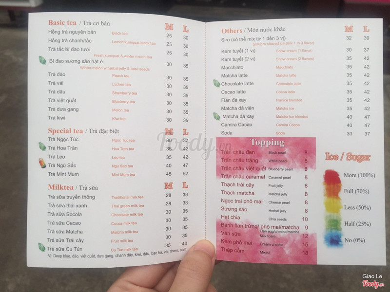 1.2Trà Đào như Trà Đá.Mua 2 ly trà đào đem về. Có con bé tròn tròn mập mập đeo mắt kiếng cận ra bán. Mang về tới nhà cách quán có 2' mà uống như trà đá với 2 miếng đào. Đóng nắp bằng bao bì nhựa ép máy ko hiểu sao ép ko kỹ chảy búa xua. Cạch mặt. Ko uống lại lần 2. Quá dở ...Xem thêm