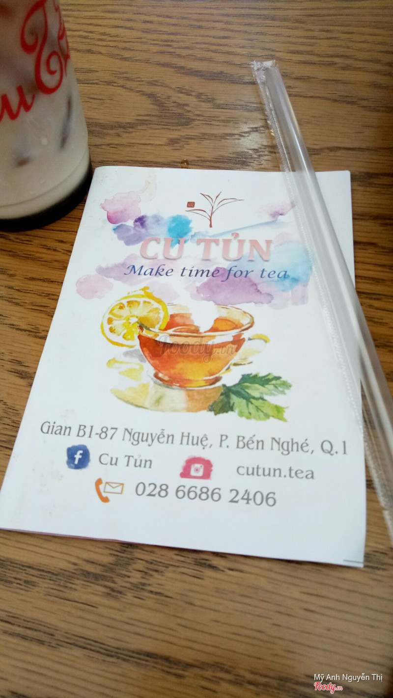 7.8Trà Cu TủnMình và bạn có ghé zone 87 chơi vào dịp cuối tuần tại cũng hot. Vào thì sống ảo này nọ xong thì kiếm chỗ ăn và uống. Nhìn 1 vòng thì thấy đập vào mắt là quán Cu Tủn với bảng hiệu khá nổi bật. Lúc đầu còn chưa biết bán gì vì kiểu thiết kế quán đơn giản ko cầu kì. Tới gần nhìn menu thì biết là bán trà-trà sữa đủ kiểu. Mà đặc biệt là khách đứng trc quán chờ order rất đông @@ nên cũng tò mò thử coi sao. Mình w bạn mình order 2 ly ts tc size L hết 76k (giá rất mềm cho khu q1) uống thì tc dai và ngọt, ts thì ko ngọt gắt còn đọng vị trà và beo béo khi uống. Nc là khá ok cho chất lượng và giá cả👌 Chỉ có hơi rối vì khách đông nhưng nv rất niềm nở. Chắc chắn sẽ quay lại vì menu thấy còn nhiều loại trà rất hay. ...Xem thêm
