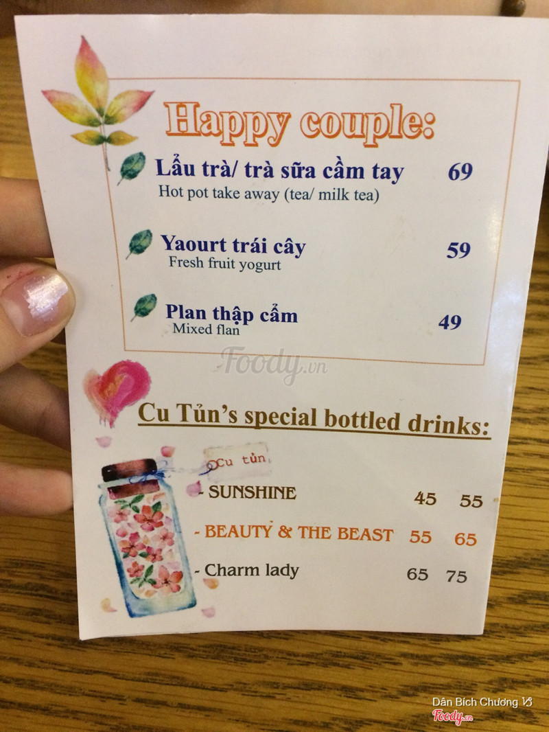 7.8Trà Cu TủnMình thật sự không thích ở đây lắm. Nhờ nhân viên ord tư vấn nước mà cứ lóng ngóng, thiếu chuyên nghiệp. Mình hỏi về món Trà sữa Cu Tủn ko béo. Bạn ấy bảo đó là món bezt seller j đó. Xong mình thấy cái hình kế bên nên mình hỏi 3 lớp váng màu là j vậy chị. Ko hiểu sao bạn ko nói thẳng ra mà kiểu ấp a ấp úng mà nói ko đi vào vấn đề. Nói một hồi mình nghe vẫn không bik là ly đó có j đặc biệt :)) mình theo kiểu cứng đầu mình hỏi tới cùng nữa chứ mình đâu quên cái mình định hỏi đâu. Nên bạn ấy bảo c muốn bik vậy c thử món đi :))))) ủa j kì vậy. Lần đầu mình thấy nhân viên kì v lun á. Giọng điệu cũng lịch sự nhưng cách nói chuyện thái độ và cách làm việc hơi thiếu chuyên nghiệp Nói chung mình hỏi về cái món trà sữa Cu Tủn cho biết nó có giống tsua thường ko thôi mà bạn ấy nói gthieu chả đâu vào đâu. Và mình uống món đó xong rồi rốt cuộc mình vẫn ko bik đó là cái j và có cái j bên trong. Điều duy nhất cảm thấy là nhạt nhẽo. Ko gì nổi bật đc. Lắc lên để uống cho đều r nha nhưng vẫn nhạt nhẽo. Rốt cuộc vẫn ko bik 3 lớp váng đó là gì luôn ấy Chất lượng và cách phục như vầy mà giá cả vậy là ko hợp rồi :(( Chừng nào áp dụng mã giảm giá khuyến mãi j cho món sữa tươi trân châu đường đen đi rồi mình quay lại uống nữa nha. Chứ giá như vậy mà mình trải nghiệm ko tốt thì mình thấy ko xứng đáng giá tiền mình bỏ ra đâu Nói chung là mình vẫn sẽ chấm điểm chỗ này cao nhưng cũng góp ý để cải thiện hơn. Hy vọng sẽ được thử món mới sữa tươi trân châu đường đen của quán ha 😊 ...Xem thêm