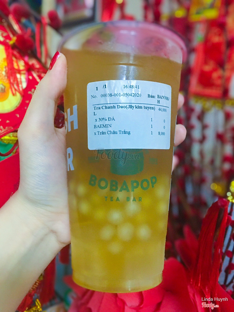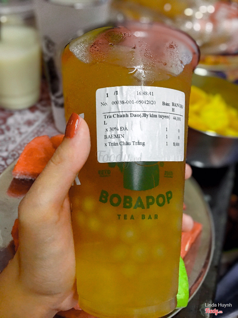 7.6Trà Sữa Bobapop -***Do mùa dịch nên hạn chế khá nhiều quán Bobapop ko mở. Bt mình hay order bên***nay đổi qua đây. Chất lượng cũng ko kém. Mình chỉ thích uống trà chanh đào jelly kim tuyến ở đây, như là nghiện luôn. Kết hợp thêm topping trân châu trắng/nha đam/hạt thuỷ tinh là chuẩn🍋🍊 Healthy lắm luôn, khá thích hợp cho các bạn muốn giảm cân. Vị chua chua ngọt ngọt dễ uống mà giá cũng mềm, tầm 30 mấy ngàn là có 1 ly sz L + add 1 topping thêm. Uống no luôn á Được tặng thẻ đo nhiệt kế nhé các bạn, cũng ngồ ngộ hihi. Mua 2 lần đều có 😁😁. ...View more
