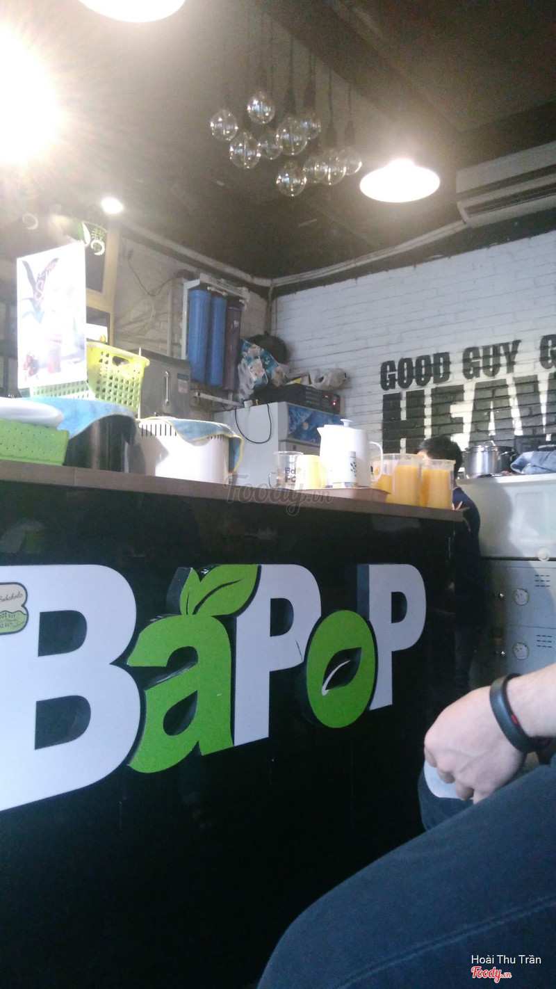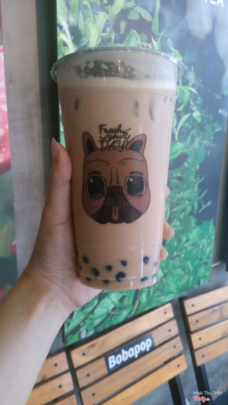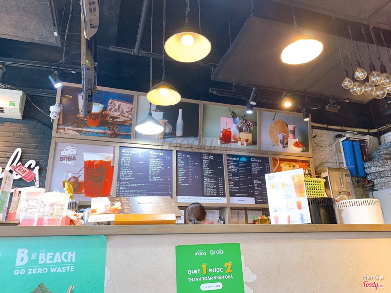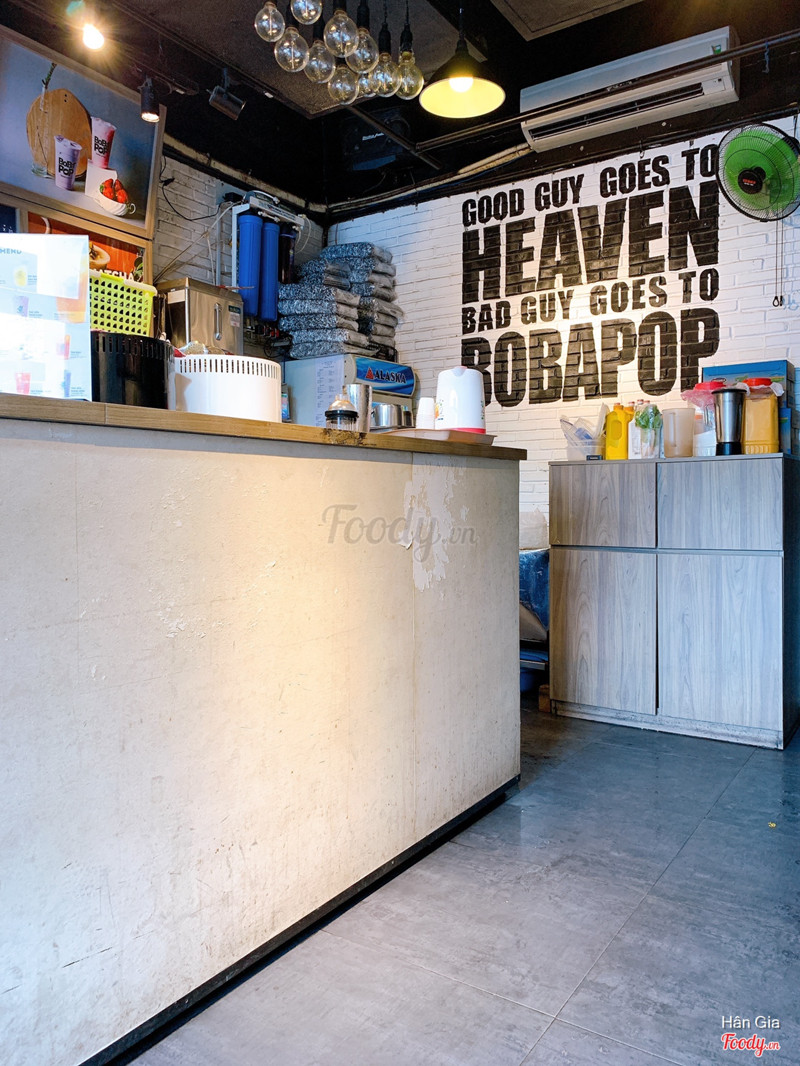 7.0Trà Sữa Bobapop -***Chi nhánh này gần nhất nên sẵn đang hẹn nhỏ em chạy 1 2 vòng thì quyết định vào đây luôn cho nhanh, chi nhánh này ko có chỗ ngồi lại thoải mái nha, có 1 bàn nhỏ nhỏ ngay cửa, trong cửa và ngoài cửa, ngồi lại 1 chút thì ok chứ ngồi lâu thì ko thoải mái. Tiệm nằm ở góc đường trần- hưng- đạo- và camelte-, đối diện macdonald cho dễ kiếm. trong tiệm thì tông đen, trang trí đơn giản, nhìn cũng hơi cũ 1 chút. Mình gọi 2 loại thấy ngoài banner là trà bưởi 2.0 và trà ổi hồng xí muội, giá thì cũng ok, dễ chịu hơn xíu so với mấy brand trà sữa khác. Về hương vị thì mình thấy bình thường, ko dở nhưng ko món nào để lại ấn tượng với mình. Nhân viên cũng nhiệt tình, làm món nhanh, mà có tranh luận với nhau hơi lớn tiếng xíu ấy. ...View more