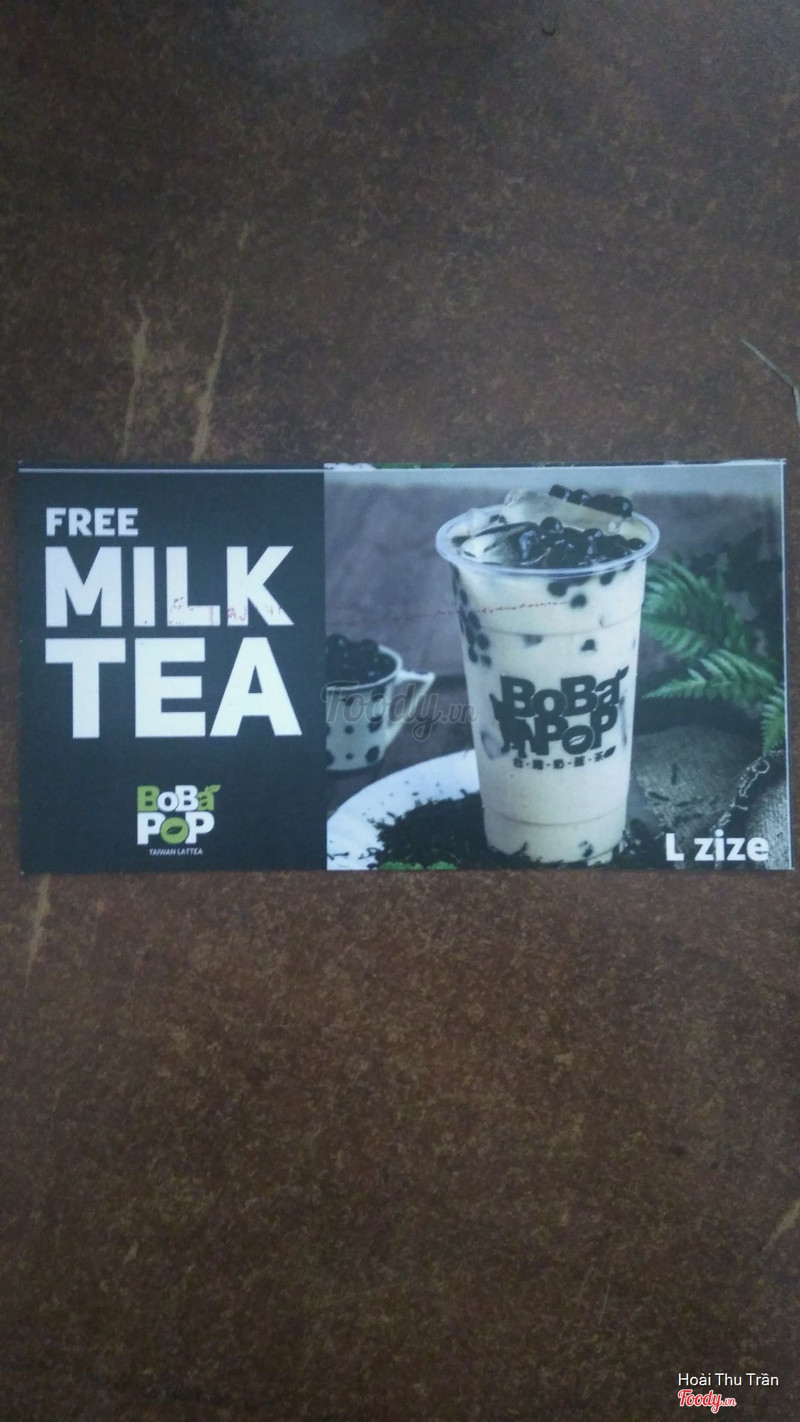 7.0Trà Sữa BobapopQuán nằm đối diện xéo với Mc Donald đoạn hướng ra chợ Bến Thành. Không gian quán nhỏ có chỗ gửi xe và vài bộ bàn ghế dành cho khách muốn ngồi lại tại quán. Nhân viên phục vụ nhanh và vui vẻ. Mình đi nhiều lần nên gộp lại review luôn. Được tặng cái voucher free 1 trà sữa trân châu size L mang ra đổi thì nhân viên không hề khó chịu. Vị trà ổn so với mình. Trân châu mềm không cứng. Matcha latte ly này nhỏ em uống. Mình không hảo matcha nên không thử. Ly matcha cheese ngon nhờ lớp cheese. ...View more