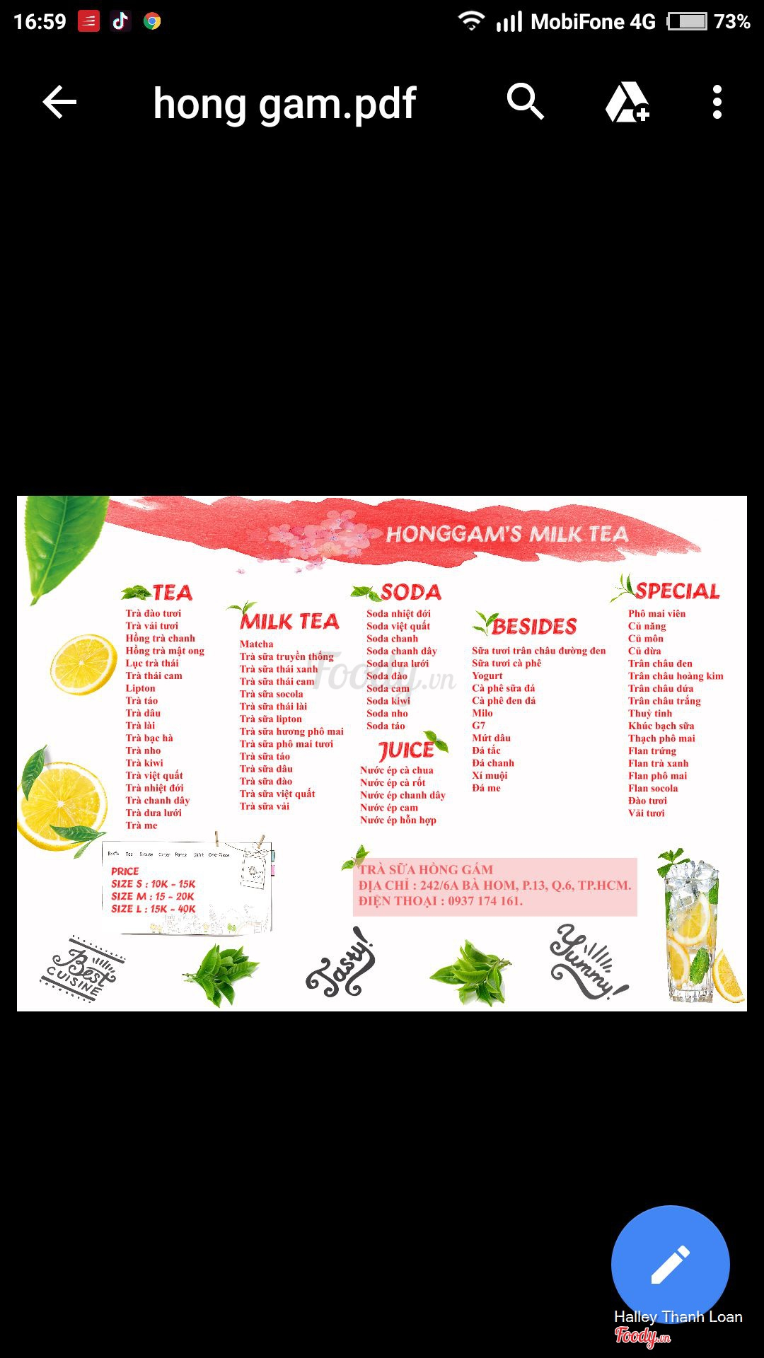 Ghi chú đặt bàn