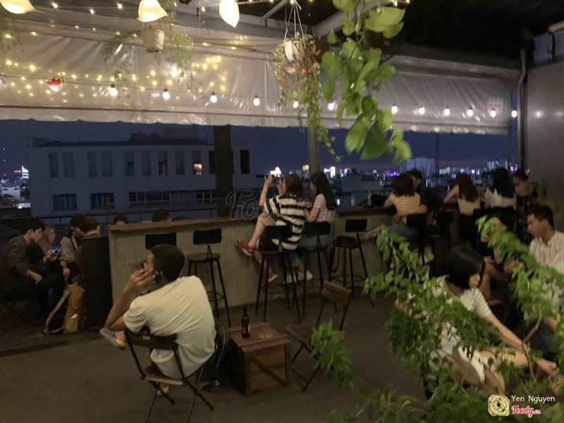 6.6Trăng Non Rooftop - Tiệm Cà PhêChiều tối mới 6h ngày thứ bảy mà quán đông nghẹt, kiếm một chỗ trống cũng khó. Quán toàn mấy em tuổi tên, tầng thượng được trải rộng, chia làm 3 khu trên tầng 7 của toà nhà. Khu chính là bên tay trái từ thang máy đi vào, có quầy bar bên trái khi vừa bước vào cửa. Không gian thiết kế đơn giản, thoáng mát. Tối thứ bảy khoảng 8pm có hát nhạc live nữa mọi người. Chủ yếu là các loại nước uống có cồn và vài loại nước trái cây đóng chai. Đồ ăn nhẹ (snacks). Đồ ăn bình thường thôi. Chưa đặc sắc lắm. Mỗi bàn có số trên miếng gỗ, tính tiền mang xuống quầy bar. (Hơi bất tiện vì đông người, phải đứng đợi xung quanh) ...Xem thêm