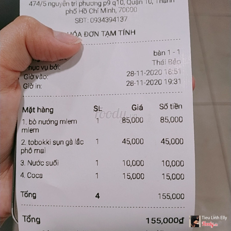 7.6Trải nghiệm sương sươngNay cuối tuần mình ghé Hiccup ăn cùng với gia đình do chỉ đi hai người nên kêu hơi ít vì mình đã ăn trước đó òi.... Lúc mình lại quán thì quán rất đông, chỉ còn bàn hai người nên mình được vào luôn khỏi phải đợi. Anh nhân viên phục vụ nói chuyện dễ nghe. Mình order Bò Nướng Mlem Mlem đơn giản vì tên món thú dzị và Tokbokki sụn gà lắc phô mai. Món ra khá chậm, khi món bò nướng ra thì sẽ đi kèm với phô mai sợi và chén tương nhưng cái lò thì được đem ra trước còn món kèm theo đem ra sau khá lâu và hên là vẫn kịp lúc để mình vẫn có thể trộn lẫn phô mai,sốt tương vào món, và lại kịp lúc mlem mlem. Còn về phần sụn gà và tokbokki thì gà không bị quá vàng nâu như mấy tiệm khác, vậy là đẹpppp. À còn về nước, mình cứ nghĩ là nước sẽ được đem ra trước nhưng do quán đông nên pv quên, mình nhắc hai lần mới bưng ra ạ. Về món bò thì đẹp, ngonnnnnn đã lắm luôn ó. Quán khá nhỏ chỉ có một trệt thôi, mong quán có thể mở rộng ra hơn nữa. Quán có chỗ giữ xe giá là 5k nha mnggg. Được cái cute là cái password wifi là chucbananngon - cảm giác ấm lòng dễ sợ. Lần sau đến sẽ ăn nhiều hơn. Love u <3 ...View more