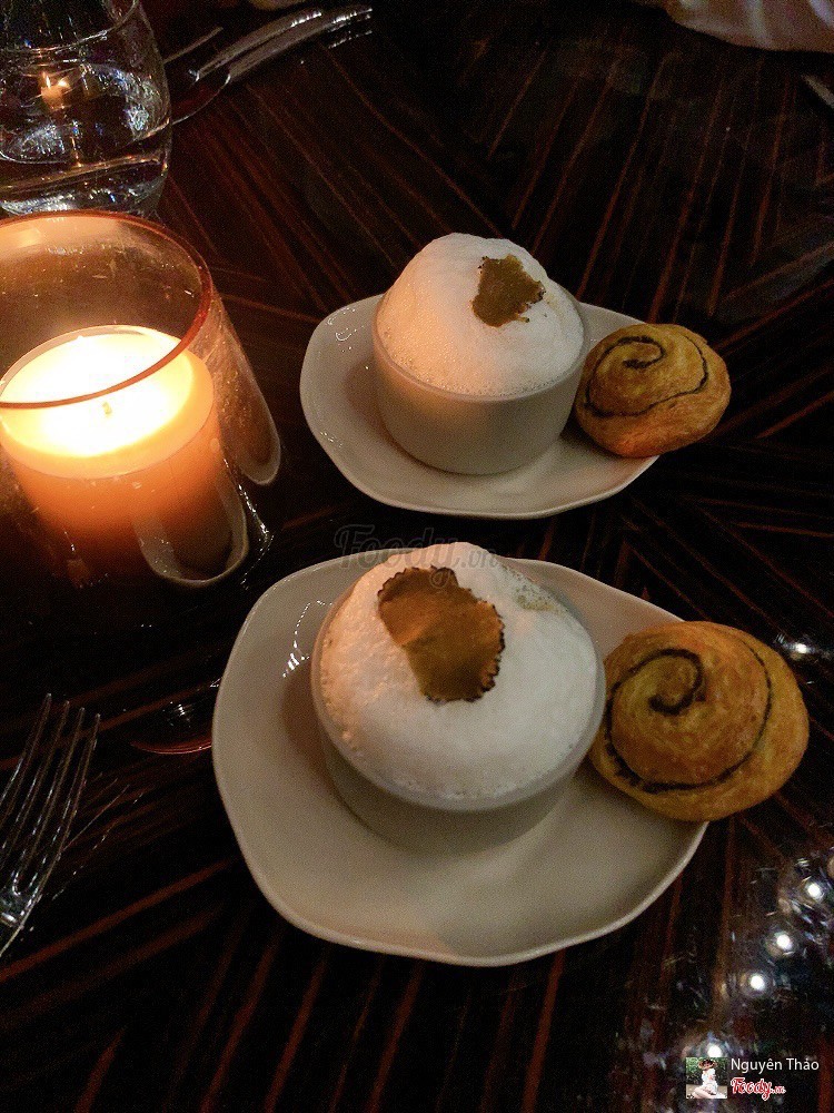 5.0Truffle Saigon - Landmark 81Địa điểm trên trời nên giá cũng trên trời 😂 Đầu tiên bước vào bạn phải đi 2 lần thang máy, từ tầng 1 bấm lên tầng 48, sau đó ra tầng 48, bấm thang kế bên đi lên tầng 73 Không gian ko quá sang trọng và hơi vắng, chỉ có 2 bàn tính luôn bàn mình cả buổi tối Nhân viên thì ok rồi và có nhạc sống, piano Phần khai vị: Free đc phần soup nấm Truffle và rổ bánh mì kèm bơ Vô phần chính: mình gọi 3 món Món bò kobe: 140g, có kèm nấm truffle, 4tr8/ phần, bò mềm, nhiều mỡ Món sò điệp: 3 con, 2tr8/ phần, cũng kèm nấm truffle Món thịt heo Tây Ban Nha: món này ăn ngán 3tr2/ phần Chai nước suối acqua panna 199k/ chai, ún 2 chai 398k 😅 Chủ yếu mắc do có nấm, chứ thật sự ko ngon, ko nên đến vì giá quá cao, món ăn ko đặc sắc Lúc về đc tặng phần quà nhỏ, chocolate vị nấm Truffle Tổng 12.933.000 cho bill 2 ng gồm 3 món 😀 ...Xem thêm