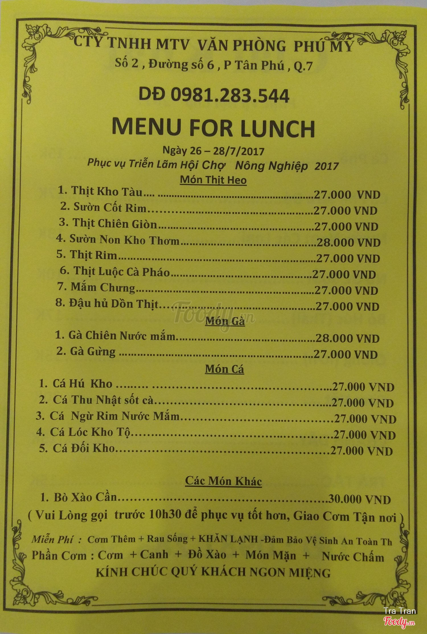 Ghi chú đặt bàn