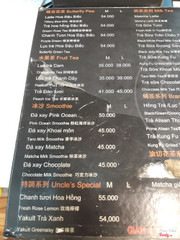 Về vấn đề ngon hay không, vị nhạt hay đậm là tùy sở thích mỗi người nên không bàn, mình thì thấy không ngon. NHƯNG.... Cảm giác khi bước vào là chả khác gì mấy hàng trà sữa tự pha ở cổng trường học. Không có menu ở quầy, chỉ có một tấm menu dán trên tường. Giá trên menu thì từ bao giờ không biết, gọi đồ xong bạn nhân viên pha chế báo giá giống như trên menu thì một bạn khác (chắc cũng là nhân viên) ngồi ở bàn nhắc là "Đấy giá cũ, giá mới tăng rồi mà". Vài nghìn bạc chả to tát gì nhưng gây khó chịu cho khách hàng. Cửa hàng cũng không có hệ thống quản lý điện tử, ko có bill, giống kiểu gia đình tự mở hơn là một chi nhánh hay cửa hàng nhượng quyền. Cửa hàng và quầy pha chế cảm giác cũng ko được sạch sẽ cho lắm. ...Xem thêm