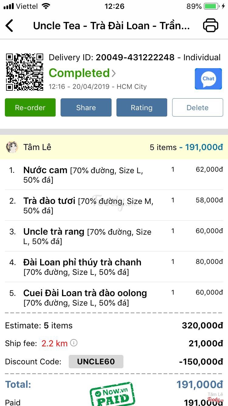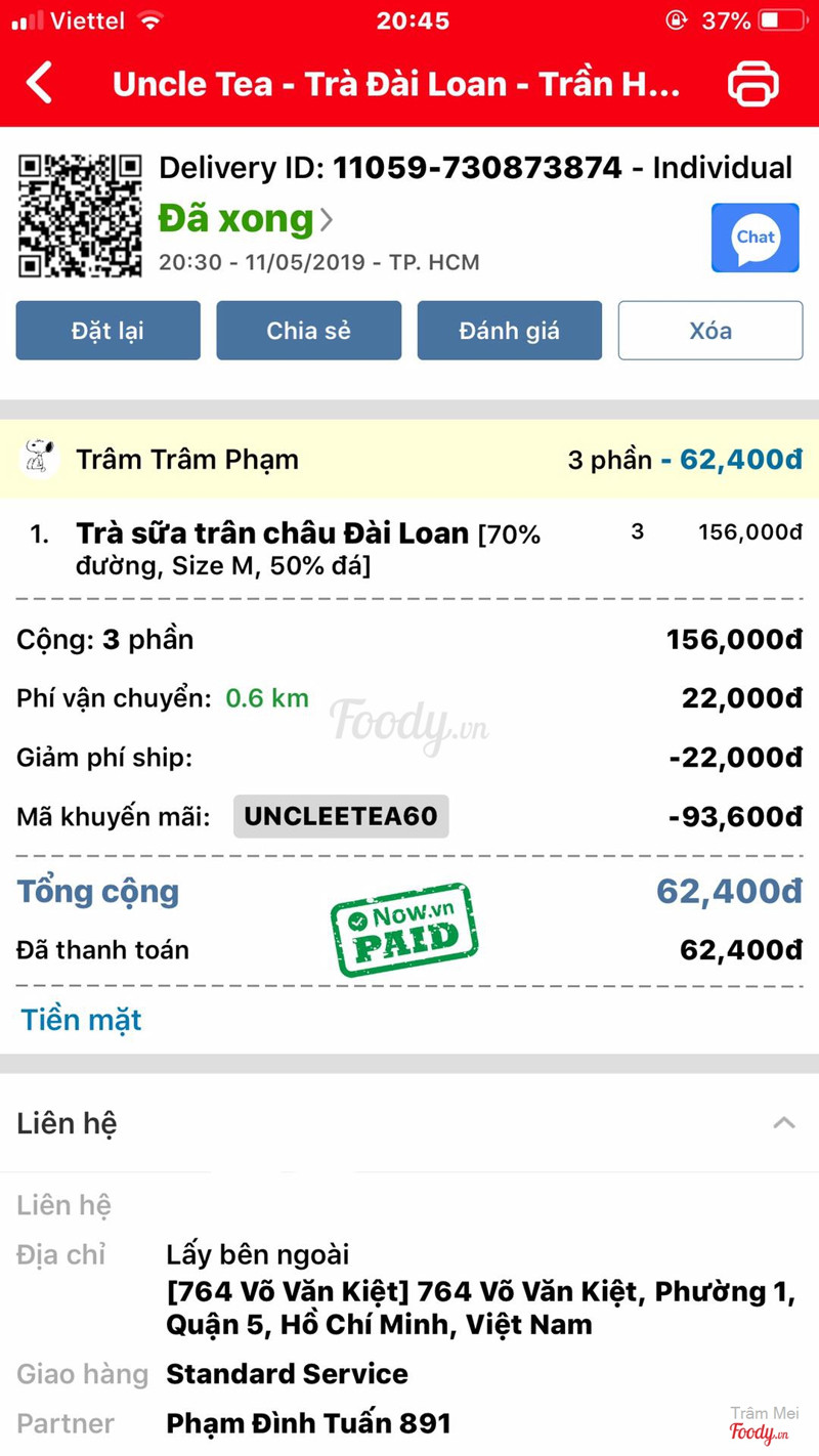 Lúc 20h30 ngày 11/05/2019 mình có order 3 ly trà sữa đài loan dc giảm giá 60% bên chi nhánh 612 Trần Hưng Đạo P2 Quận 5 Lúc này coi bản đồ thấy shipper chạy qua quán trà sữa luôn, nên mình tưởng là bản đồ bị sai hoặc bị lag Lúc shipper tới giao cho mình thì bạn mình đi lấy nên cũng ko để ý, bạn mình lấy xong mới kiểm lại thì thấy ko có hoá đơn cũng ko có tem in trên ly??? Trông lý trà sữa rất cheap giống mấy ly trà sữa lề đường😢😢😢 ...Xem thêm