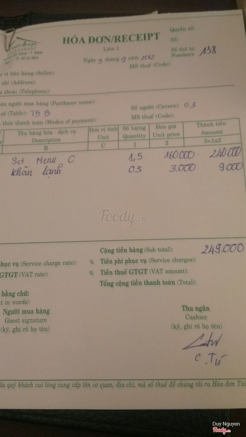 Ghi chú đặt bàn