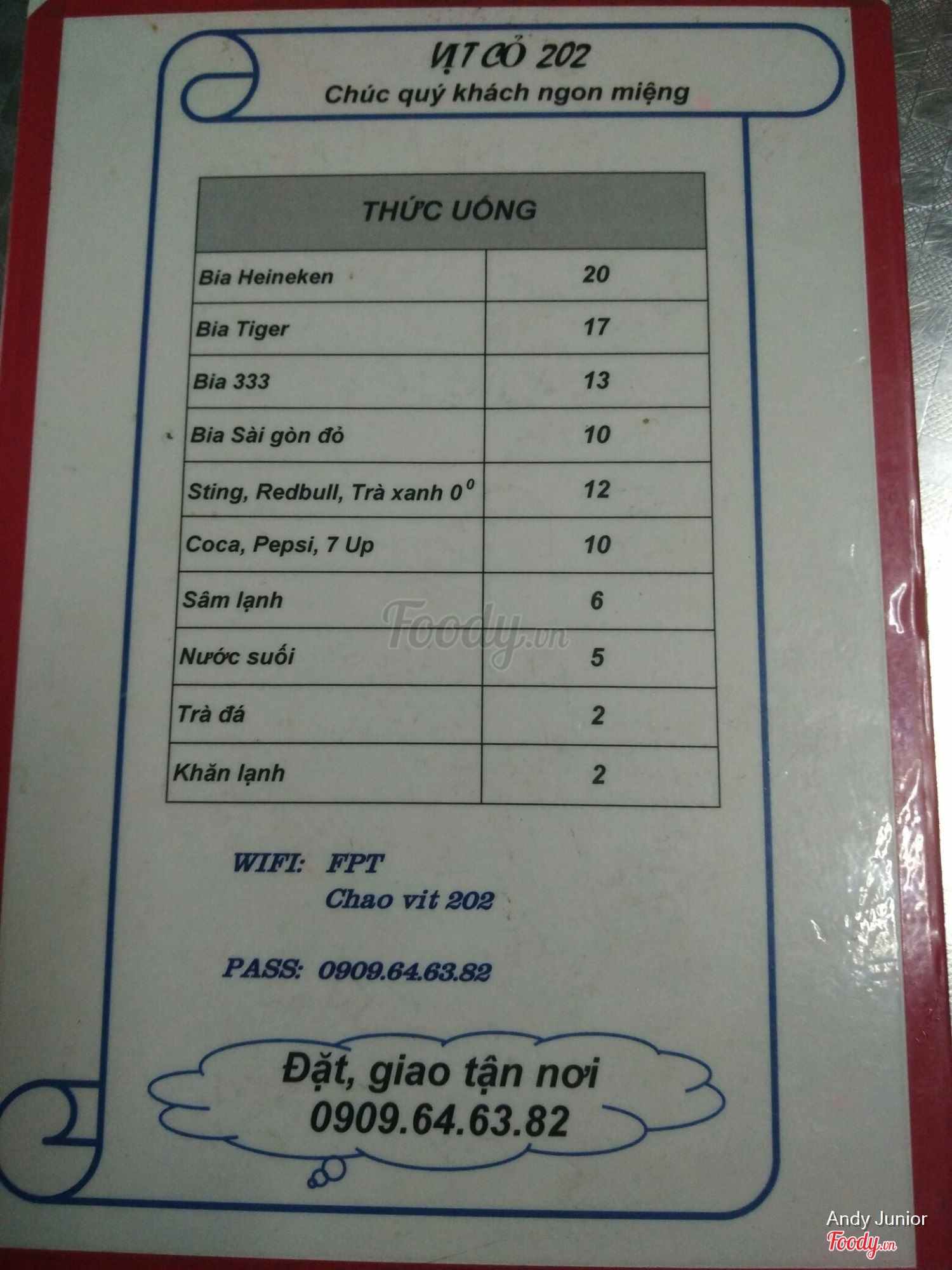 Ghi chú đặt bàn