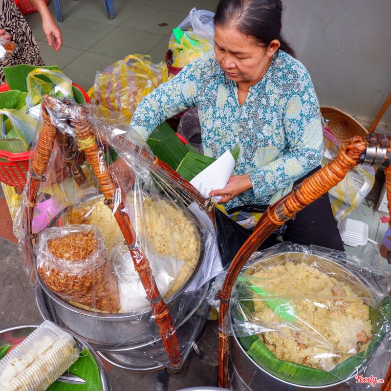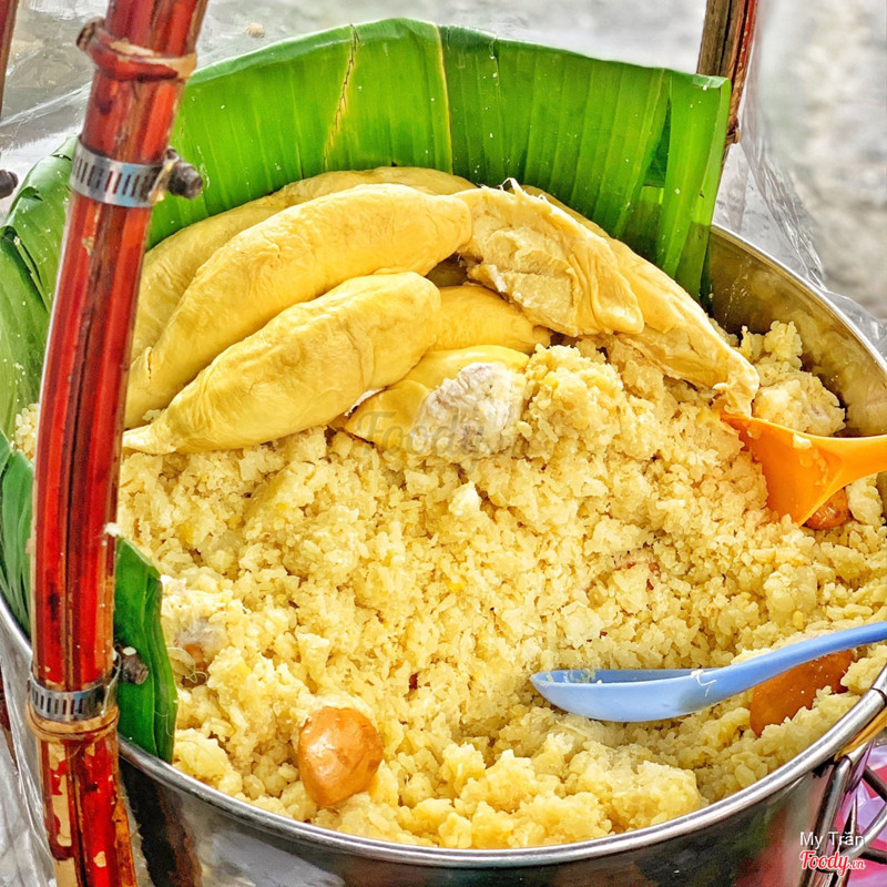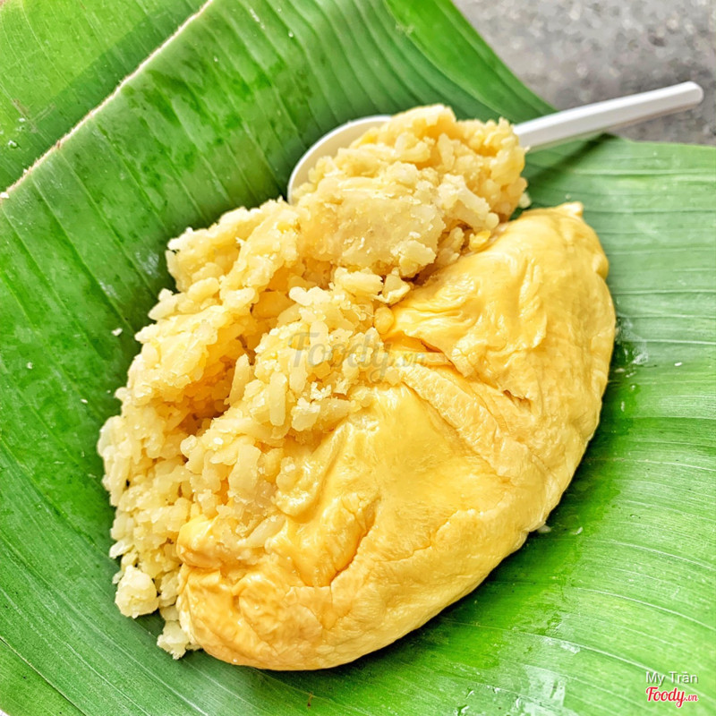 8.2Xôi sầu riêng nguyên múiMỗi ngày cô chỉ có 5 trái sầu riêng để bán thôi nên ai muốn ăn phần xôi nguyên múi thì đặt mua sớm mới còn nhé. Giá là 80k/hộp xôi vò sầu riêng nguyên múi bự đùng. Cơm sầu riêng ở đây ngon lắm, thơm cực kì luôn. Phần xôi vò cũng ngon nốt, 1 gói xôi vò không chỉ từ 8k (gói nhỏ), 20k (hộp vuông nhỏ) và 35k/hộp chữ nhật bự đùng ăn 3 người. Gánh xôi nhỏ nhưng đông cực kì luôn, xôi được để trong lá chuối rồi mới bỏ vô hộp mang đi. Ai đến ăn tận nơi thì gói lá chuối như hồi xưa ăn luôn. Gánh xôi nên chỗ ngồi cũng hạn hẹp, được 1-2 ghế à nha. ...Xem thêm