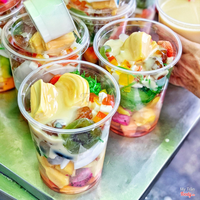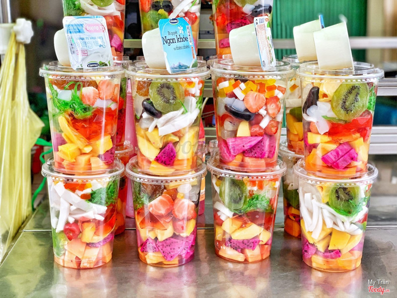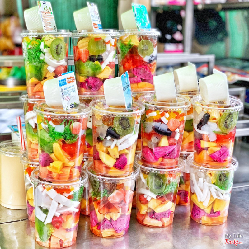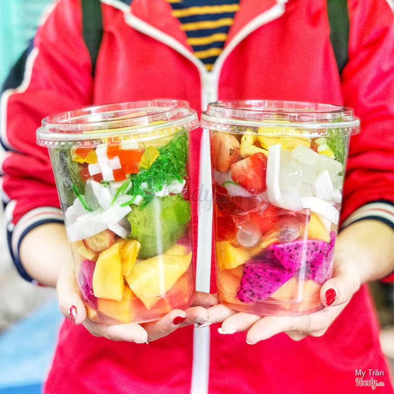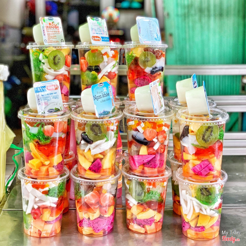8.4Take awayĐi núp mưa mà phát hiện được cái bàn trưng mấy ly trái cây tổ mẹ mua ăn thử coi sao. 1 ly to đùng size 1 lit này là 35k nha, thêm hũ sữa chua kia 5k nữa là 40k. Ly trái cây đầy óc nóc bao gồm: thanh long đỏ, đu đủ, nhãn, vải, dâu tây, kiwi, dưa hoàng kim, bơ,… ngoài ra còn có thêm thạch sương sáo, thạch dừa rồi rau câu các thứ, ta nói nó tả pí lù. Thêm sữa đặc vô dầm lên với đá ăn mà thở lên thở xuống, 1 ly này chắc ăn 2-3 người. Qẹo lựa mua về ăn nha. Chiều chiều tầm 4-5h là cô bày bán ngay ngã tư đi lên chút, chỗ xe trà sữa nha. ...Xem thêm