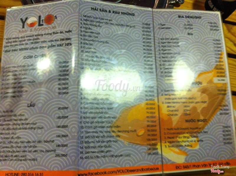 7.6YOLO Beer & BarbecueNgười yêu mình đi nhậu rồi mình đi ké thôi nên không rõ giá cả như nào nha nhưng xem menu thì thấp nhất là 39k/ 100 gram. Giá khá cao nha. Vị trí nằm ngay đầu đường Lê Đứcc Thọ rất dễ tìm, dễ thấy. Không gian cũng sạch sẽ, rộng rãi, thoải mái. Nhân viên phục vụ nhanh nhẹn, vui vẻ, thay vỉ liên tục Món ăn thì quán chủ yếu là các món nướng, nêm nếm ok, hải sản bạch tuột rồi tôm khá là tươi, bò cuộn nấm kim châm ngon nè. Có dịp sẽ quay lại ...Xem thêm