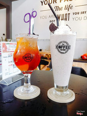Trà đào & sinh tố Ý việt quất