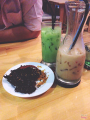 Trà sữa + trà sữa matcha + rong biển xào tỏi