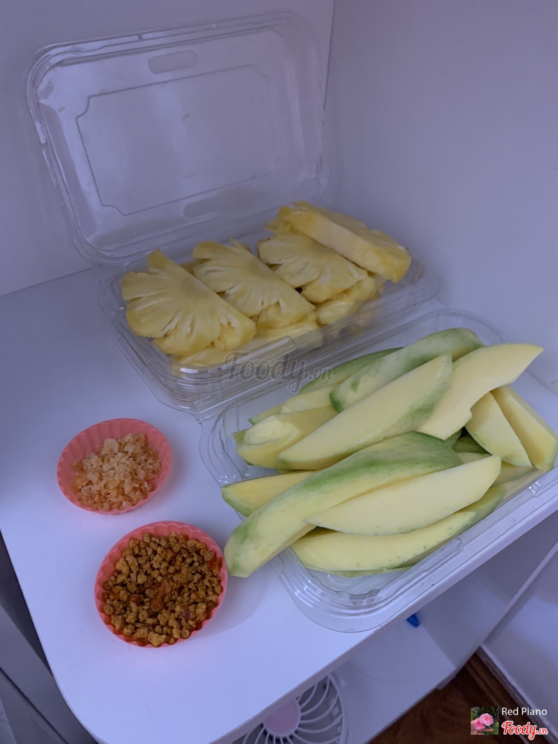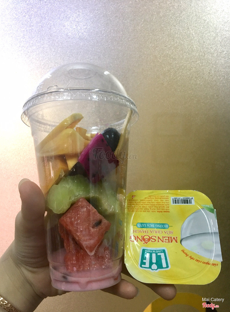 6.8Trái cây tươiLâu lâu đổi món với trái cây dầm sữa chua. Được hôm quán giảm 50% luôn. Trái cây thập cẩm sữa chua 39.000₫ còn 19.500₫: sữa chua và đá được để riêng, nhiều xoài, xoài chín lắm luôn nhưng lại chua. Bao gồm các loại trái cây như: mít, nho, kiwi, xoài, chôm chôm, dưa gang... Bánh tráng tỏi Long An 20.000₫ còn 10.000₫: bánh ngon nhưng nhiều dầu quá với giá 10.000₫ chấp nhận được chứ 20.000₫ bịch có tí à. Ngoài trái cây, Yumi còn có rất nhiều món ăn vặt như khô gà, bánh tráng, rong biển, bắp lắc, cơm cháy... ...Xem thêm