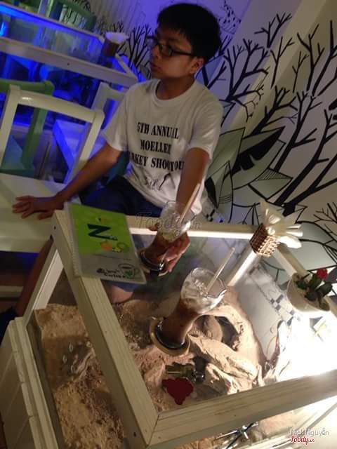 9.0Zoo Coffee - Tôn Thất ThuyếtKhi bước chân vào đây lần đầu tiên, mình có cảm giác hơi quai quái. Bạn mong thấy một không gian đầy ắp những thú nhồi bông dễ thương, những bông hoa khoe sắc dịu dàng và những icon xì tin á, đừng có mà mơ. Bạn sẽ chỉ thấy một thế giới khá rùng rợn với cây cối um tùm và ngổn ngang, có tiếng nước róc rách chảy và thỉnh thoảng có tiếng kêu của các loài vật cứ thoắt ẩn thoắt hiện. Đấy chính là cái cảm giác khi mà bạn đang lang thang trong rừng rồi đột nhiên bắt gặp một bầy bò sát rất ghê gớm ý, nhưng bạn lại chả sợ tí nào vì chúng cứ nằm in thin thít và cực kỳ ngoan ngoãn. Không gian thiên nhiên đúng như tên gọi của quán. Rất mát mẽ và hoang dã. Nước uống thì tạm ổn. Nhân viên thân thiện vui vẽ lắm. Nhất định sẽ ghé lại không gian tuyệt vời này ...Xem thêm