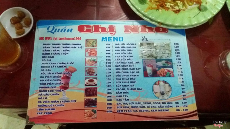 7.0Ăn Vặt Chị Nhỏ - Bánh Tráng TrứngQuán này lâu rồi mình mới đi tới lại chắc cũng gần nữa năm rồi! Quán này mình thấy cũng không mấy thay đổi! Không gian quán cũng rộng rãi đều dọn bàn lâu quá thấy rác dưới đất cũng hơi nhiều thấy bẫn bẫn sao ak! Lâu rồi mấy món ở đây ăn cũng được! Món bánh tráng trứng ăn cũng ổn đều không ngon như trước nữa! Xoài lắc ăn cũng có vị chua chua măn măn đều gia vị chưa thấm hết vón cực lại ăn sao sao ak! Nói thì ăn cũng được đều chưa ngon! Mấy loại nước cũng tạm! ...Xem thêm