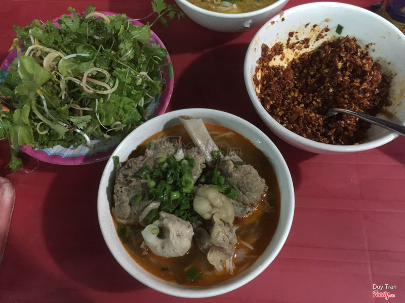 7.6Rẻ, ngon mặc dù quán vỉa hèBan đầu không dự định ghé đây vì chạy xa chỗ nhà nghỉ, xui thay cái quán định đến lại chỉ bán buổi sáng, thế là quay đầu xe lại quán này. Cũng chưa rành bún bò tại đây như thế nào, thế là cứ gọi như bún bò của SG: tái, nạm, chả, xương. Thế là cô gái phục vụ tươi cười nói ko có nạm với xương anh ơi :)) Thôi thì nghe mấy bàn kế bên gọi bò cua thì mình cũng gọi bò cua theo. Có một số ý kiến về quán như sau: Ưu: + Nước dùng ngon, ngọt thịt, chả cua to, thịt tái ngọt, mềm. + Rau sống dùng kèm đa dạng. + Có phục vụ kèm nước mía nếu muốn gọi thêm. + Lên món nhanh, mặc dù quán rất đông. Nhược: + Mặc dù ngoài trời nhưng không khí nóng, ngộp vì đông. + Rau sống còn vài cọng bị úng, dập. ...Xem thêm