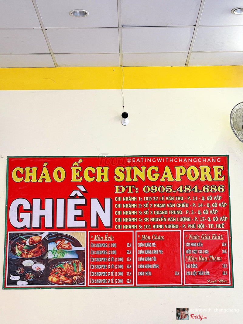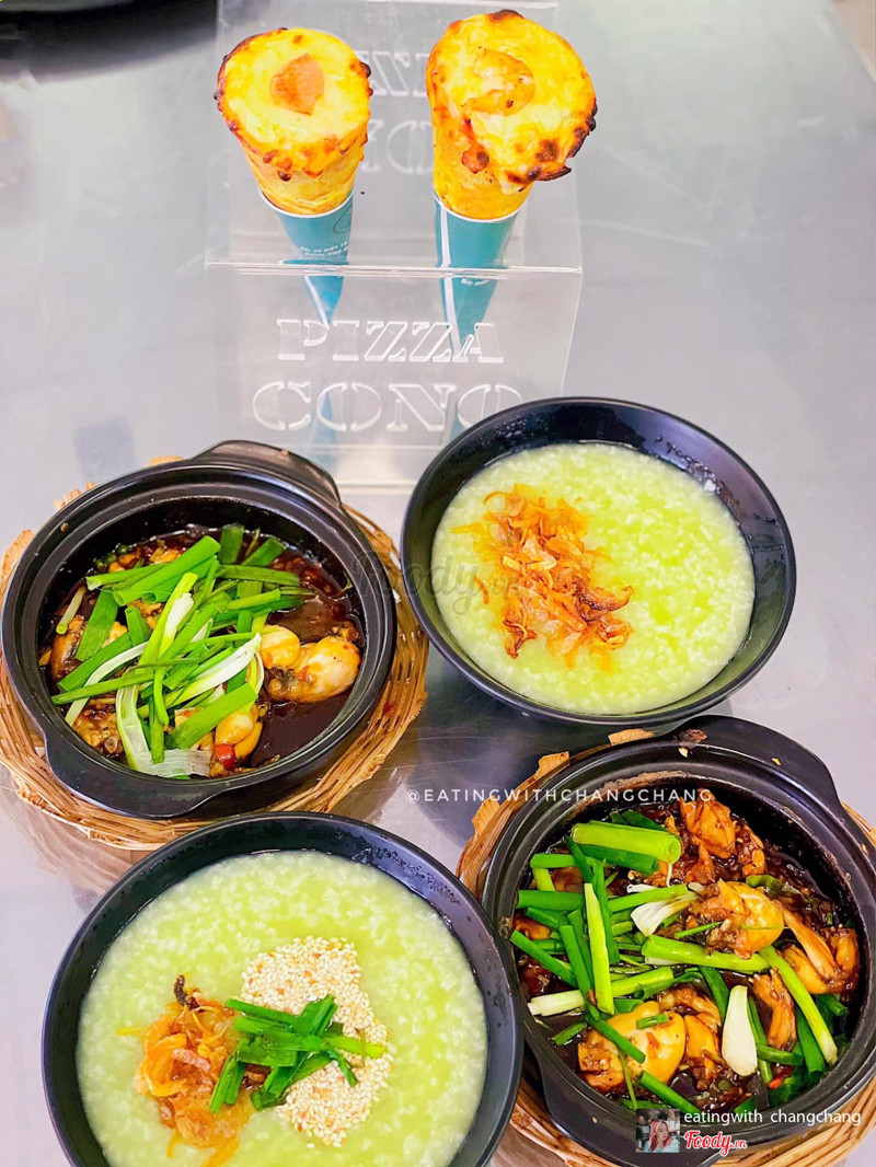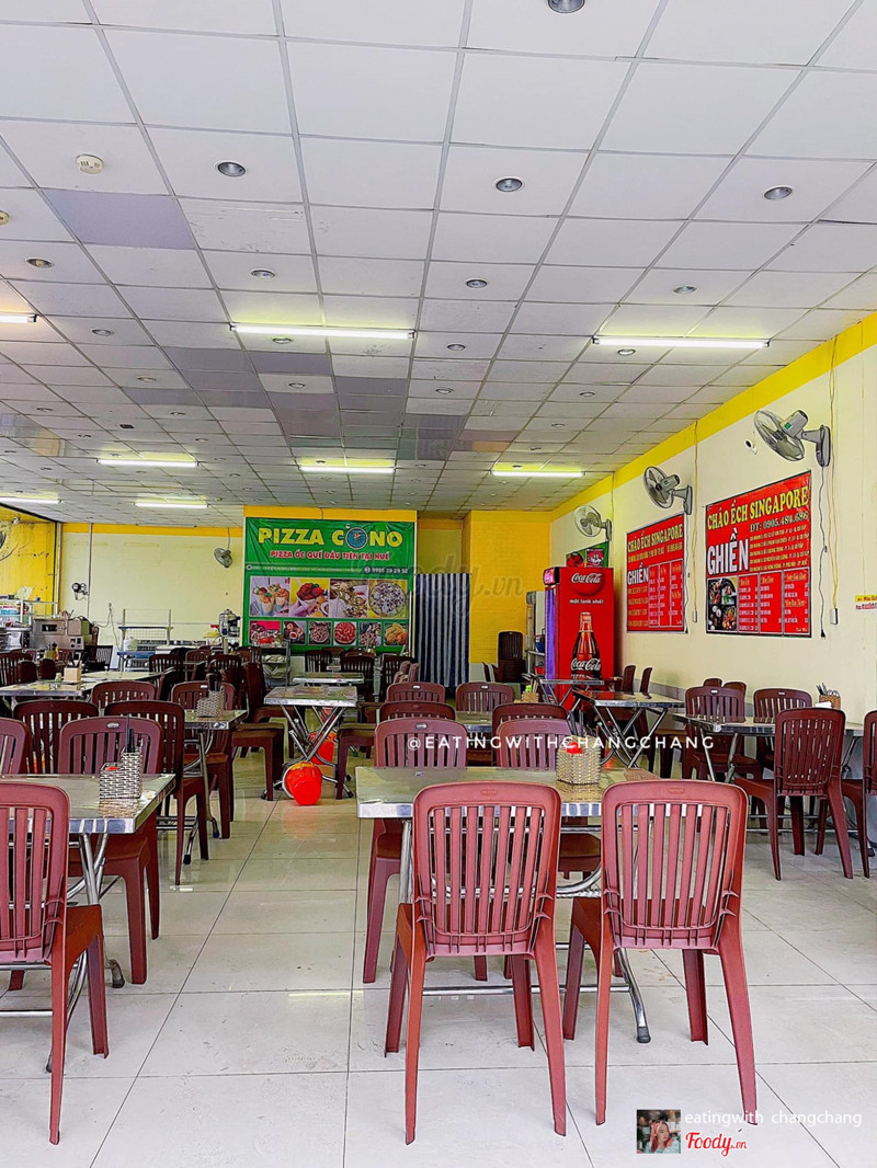 7.8Cháo Ếch Singapore Ghiền -***👉🏻Ở đây sẽ có tổ hợp 3 quán: cháo ếch, bánh canh cá lóc và pizza cono với không gian siêu rộng và các anh chị chủ cực kì mến khách, giới thiệu món tận tình lại siêu hài hước nữa. Menu ở Ghiền gồm cháo ếch thường, sả ớt hoặc sa tế với giá từ 35k đến 62k. Cháo ở đây là cháo lá dứa, được nấu nhuyễn, không quá đặc nên khá dễ ăn. Mn có thể chọn thêm hương mè, hương tỏi hoặc hành phi cho cháo nha. 🤤Thố ếch ở đây bao chất lượng, con nào con nấy to đùng, chắc thịt lại được nêm nếm đậm đà, ăn cùng cháo cuốn thôi rồi. 🍕Trong hình Chang gọi 1 cháo ếch sả ớt và 1 cháo ếch sa tế (74k), ngoài ra tụi mình còn gọi thêm 2 pizza cono vị hải sản và thập cẩm (58k). Pizza cono đồng giá 29k với khá nhiều lựa chọn hải sản, bò băm, xúc xích, thịt nguội, rau củ... Pizza được tạo hình ốc quế xinh xắn, đầy ắp nhân bên trong chứ không hề bị độn bột. Vỏ bánh có độ dày vừa phải, lớp ngoài giòn lớp bên trong có phô mai béo ngậy quá chất lượng so với giá thành. Tiếc là hôm Chang ghé quầy bánh canh không mở, chứ có thì cũng thử nốt luôn nè 😌 ...Xem thêm