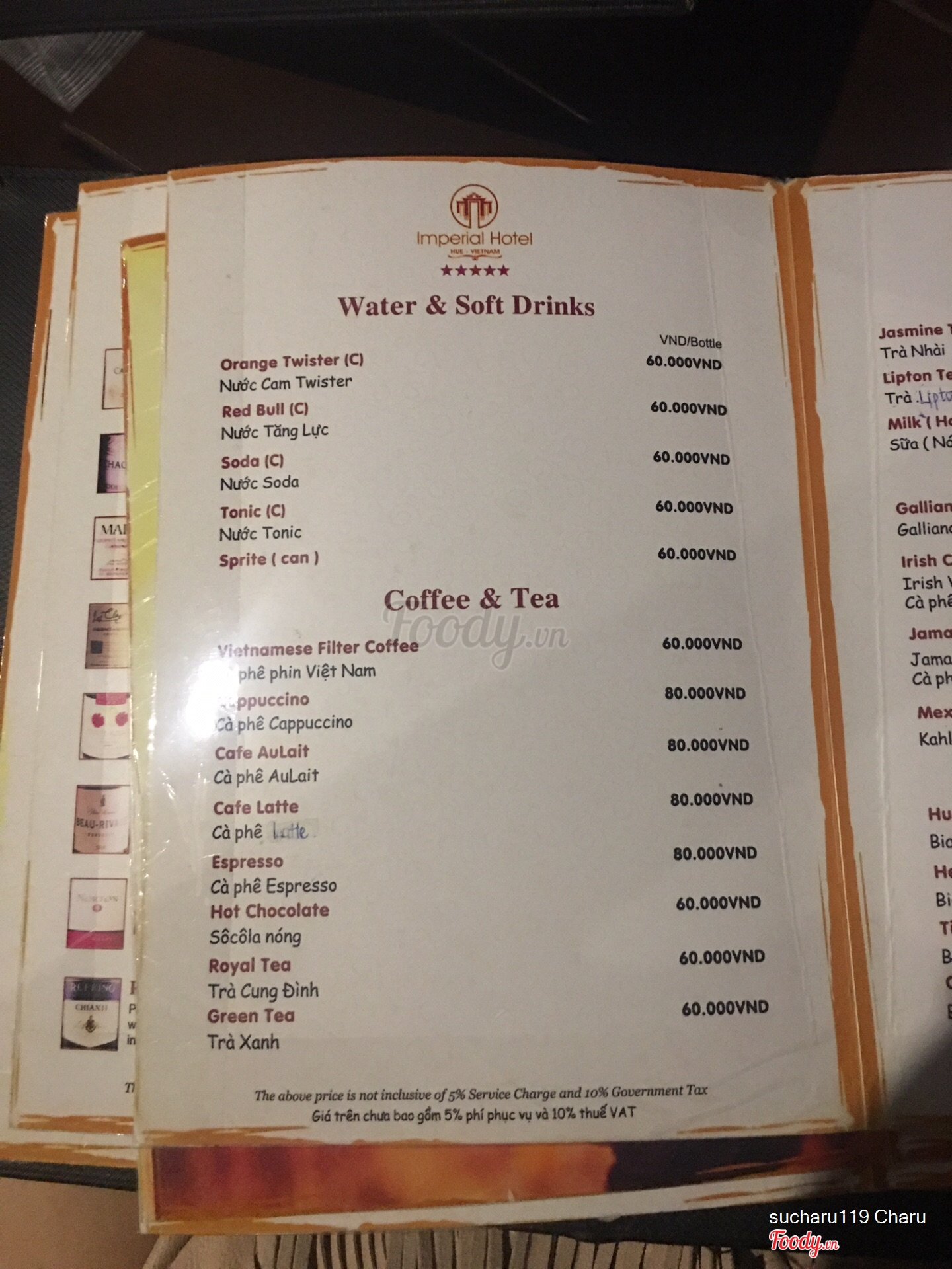 Menu Cơm cung Đình Huế ở Imperial