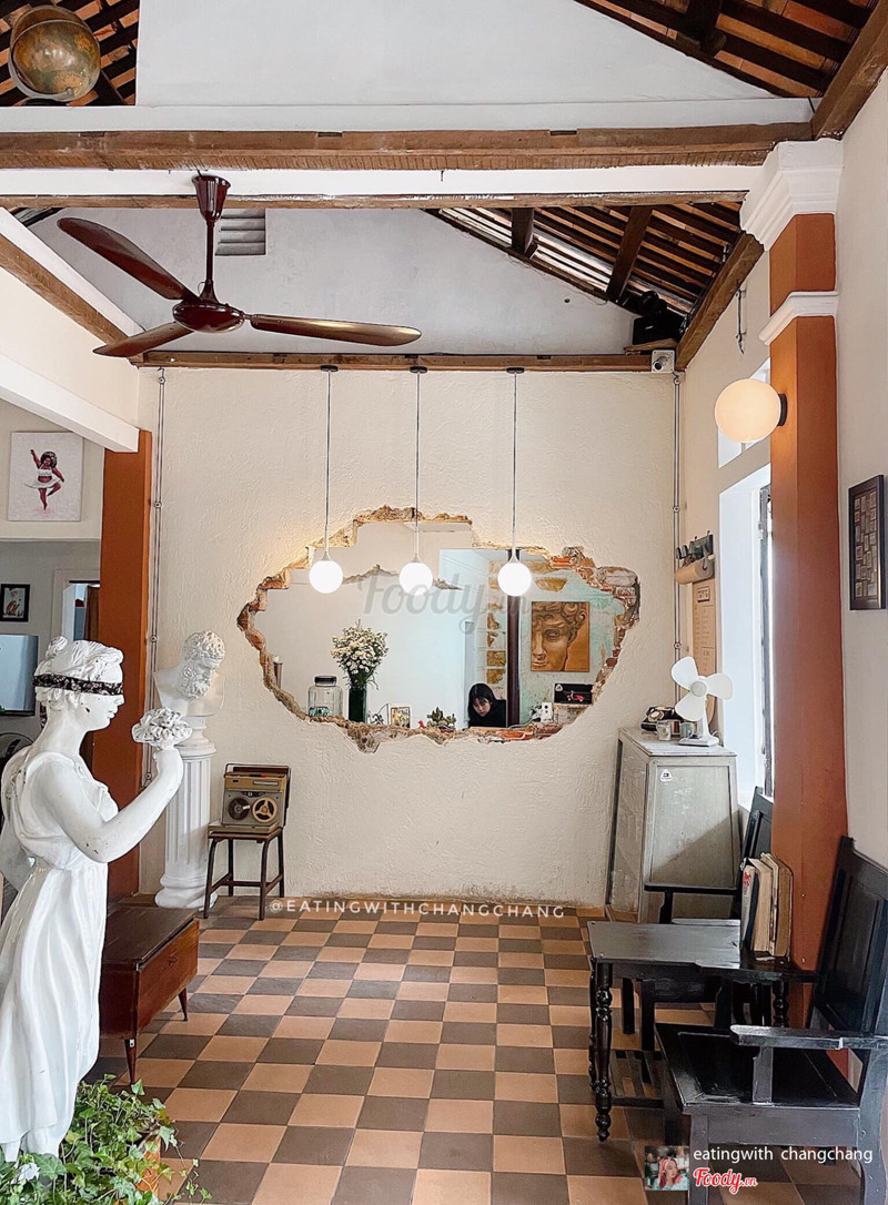 8.0Ngang Cafe - 21/235***☕️Một quán cà phê đậm chất nghệ thuật ngay khu Big C. Lúc xem ảnh về Ngang cứ đinh ninh là quán bé thôi, ai dè vừa đến đã ngỡ ngàng bởi khoảng sân vườn siêu rộng rãi, thoáng mát. Không gian bên trong thì càng chất chơi hơi nữa với những mảng tường được tạo hình đầy sáng tạo và các pho tượng, bàn ghế, khung cửa cho đến các em quạt bàn, lọ hoa... đều đậm chất vintage, lên hình xinh xuất sắc📸. Menu ở đây chủ yếu là các món basic như cà phê, trà, nước ép... Chang có gọi thử 1 bạc xỉu (23k) và 1 trà đào (27k). Đồ uống không quá cầu kì nhưng hương vị ổn áp nè. ...Xem thêm
