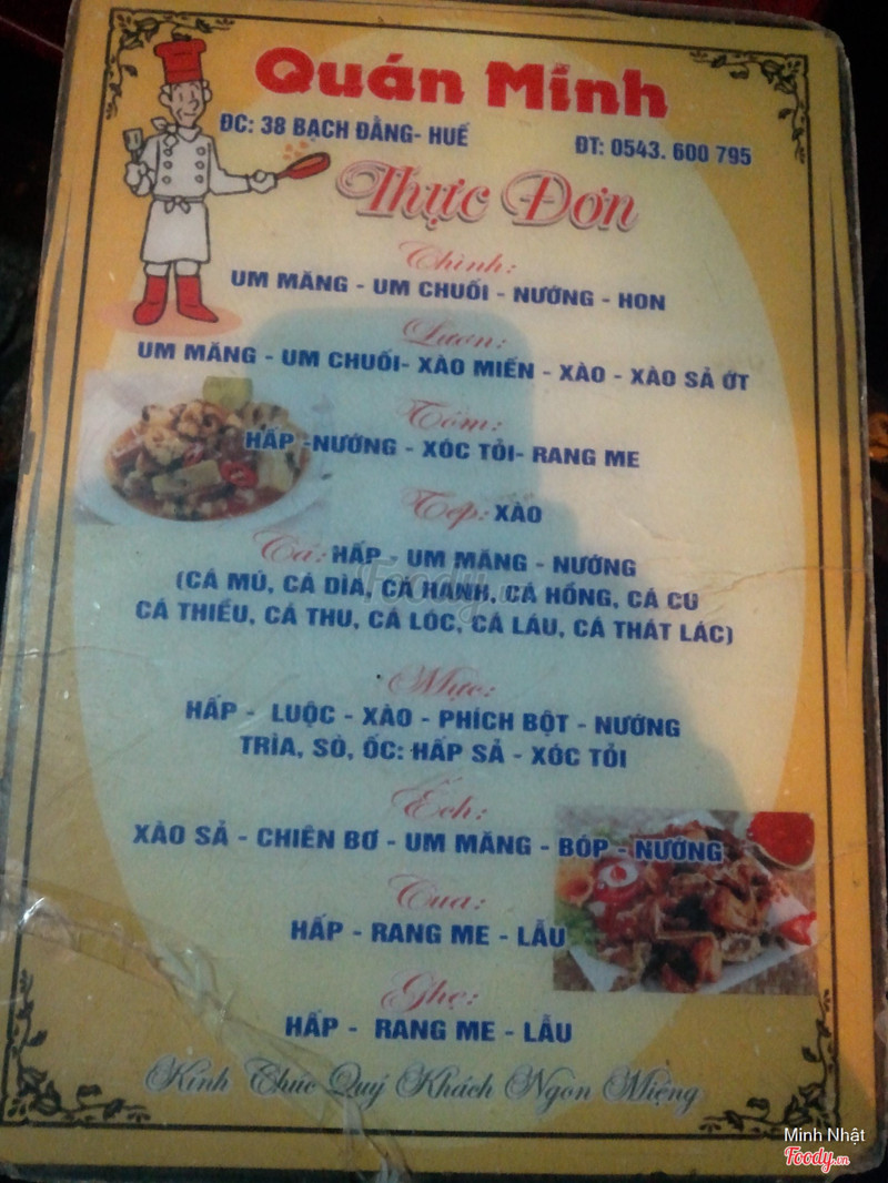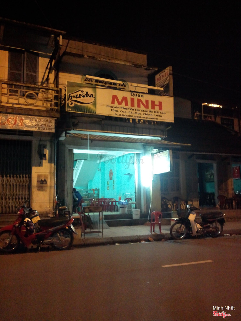 7.4Quán Minh - Hải Sản Tươi SốngTừ mắt kính trường tiền các bạn chạy lên 1 tí nữa là thấy quán nhậu này, quán có 2 không gian: 1 phần ở trong nhà, 1 phần là ở đối diện ngay cạnh dòng sông tươi mát. Menu của quán khá đơn giản, chỉ 2 mặt của 1 tờ giấy A4. Lần ấy bọn mình đi tầm 7 người nên gọi khá nhiều món, ấn tượng nhất vẫn là ếch xào sả ớt và bún xào nghệ. Mình có 1 chú ý nhỏ cho các bạn, tuy thực đơn không ghi giá nhưng yên tâm là các món ăn rất rẻ. Cứ tưởng tượng mỗi người trong nhóm mình đều no, uống crystal thoải mái mà mỗi người chỉ góp có tầm 100k là hiểu độ bình dân của quán. Sau khi biết được quán này, khi nào muốn tìm quán nhậu có không gian mát mẻ, giá rẻ như cho thì đây là 1 trong những lựa chọn của mình. ...View more