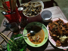 8.4Ngon và giá cả hợp lýHôm nay mình đi 2 người ăn ghẹ, cua và hàu. Tổng ăn 1/2 kg ghẹ, 1 con cua thịt nhỏ họ tính 30k, hàu nướng 70k/kg đc khoảng 6-7 con. Tổng hết 220k và 1 chia bia huda 8k. Giá cả mình thấy khá ổn. Ghẹ to tương đối 250k/kg Ghẹ nhỏ 220k/kg Cua thịt rẻ hơn cua trứng. Thấy bảo ng huế thích ăn cua trứng. Cua thịt là 300k/kg Cua trứng là 550k/kg Hôm nay có cả chíp chip rồi ốc và ngao nhưng mình k ăn nên k hỏi giá. Vị trí k sát bờ biển ở phía bên này đường. Gần đoạn vào bãi 3. Ăn ngon và no. Nếu có lần sau sẽ quay lại. ...Xem thêm