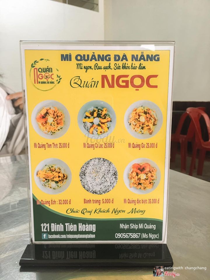 8.6Quán Ngọc - Mì Quảng Đà Nẵng🎊Nay tập tành dậy sớm để trở thành người thành công, chưa thấy thành công đâu chỉ thấy tốn tiền ăn sáng, cà phê thôi mọi người ạ 🤣 Cũng vì dậy sớm nên được dắt đi thử quán Mì Quảng siêu ngon, tranh thủ giới thiệu với mọi người liền nè ✌🏻Quán Ngọc - Mì Quảng Đà Nẵng tại Huế có 2 cơ sở: 👉🏻Cơ sở 1 ở mặt tiền chợ Tây Lộc chỉ bán buổi sáng, quán vỉa hè nho nhỏ chủ yếu phục vụ khách đi làm và các mẹ, các dì đi chợ tiện đường ghé ăn luôn. Vì là quán vỉa hè nên sẽ hơi nóng xíu, bù lại chất lượng mì Quảng không chê vào đâu được và giá siêu siêu rẻ. 👉🏻Cơ sở 2 ở 121dinhtienhoang mở cửa từ 5.00 cho đến 20.30 với không gian mát mẻ và khang trang hơn nè, nếu mọi người không vội buổi sáng thì highly recommend các bạn ghé cơ sở này để được phục vụ tốt nhất nha. Ở cơ sở này vì có mặt bằng nên giá sẽ nhỉnh hơn bên kia tầm 5k, được cái có quạt mát mẻ, phần ăn lại đầy đặn hơn cơ sở 1 chút nè. 🍜Menu ở quán có đầy đủ các loại mì Quảng từ tôm thịt, gà, ếch, cá lóc và đặc biệt với giá khá bình dân 25k - 35k. Chang gọi thử 1 Mì Quảng ếch và 1 Mì Quảng đặc biệt. Chu choa mạ ơi, ta nói cái tô hắn nhiều chi lạ, ăn no nóc luôn. Tô đặc biệt phủ phê nào tôm, thịt, gà, với cả trứng cút, ăn ngập mặt. Tô mì ếch thì được hẳn nguyên 1 con ếch luôn mọi người ạ, bao phê. 🤤Nước dùng đậm đà, tôm thịt ướp thấm tháp, đặc biệt thịt gà ở quán ngon lắm nha, thịt dai không bị bệu nên ăn đến đâu đã đến đấy. Chị chủ lại siêu thân thiện và dễ thương nè. ☎️Quán có nhận ship nữa,***nào lười ra khỏi nhà có thể alo số điện thoại trên ảnh để được ship tận nơi nì. Nếu mọi người vẫn đang băn khoăn hôm nay ăn gì thì note quán này lại thử đi nha, ghiền luôn á. ...Xem thêm