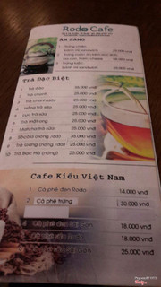Menu tại Rodo Cafe (thiếu food)