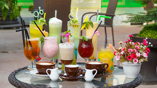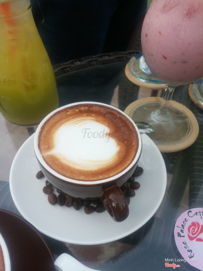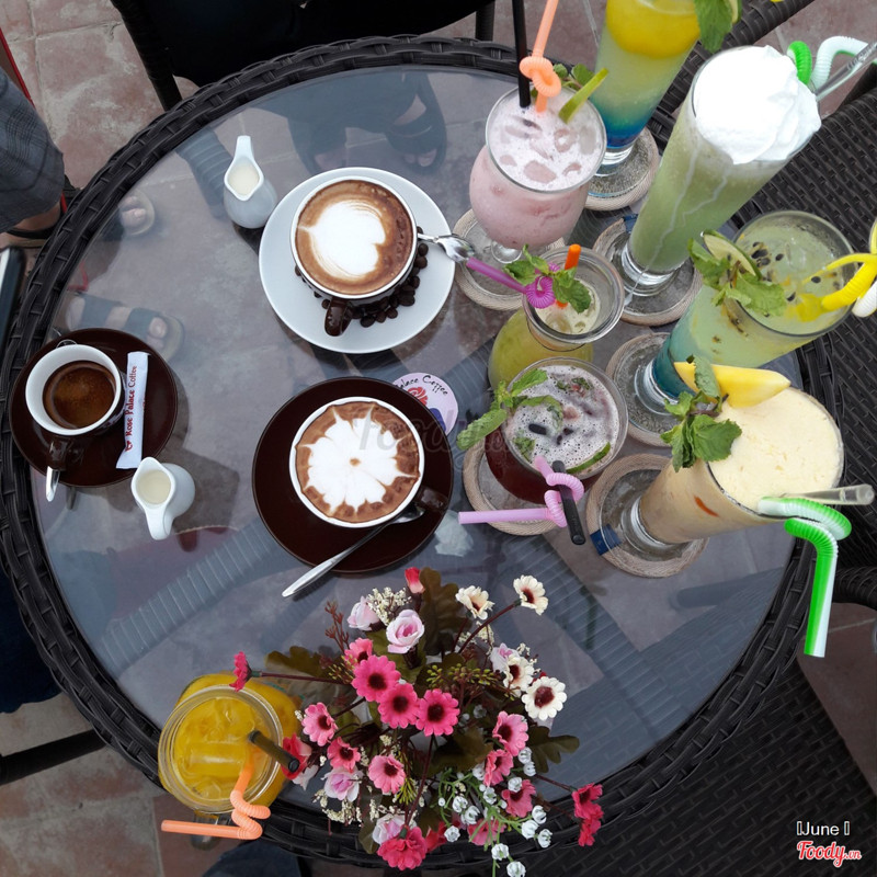 8.2Rose Palace Wedding & Convention CenterỞ đây có thể nói là một trung tâm nhà hàng tiệc cưới không còn quá xa lạ với Huế, được nhiều người biết đến. Giờ mở thêm cafe ở tầng 3 nữa nên biết tranh thủ đi liền. Đi lên thang máy bước ra là thấy một không gian rộng rãi, thoáng mát, mình đi buổi chiều nắng nóng nên chọn vào phòng máy lạnh mát rượi, đi vào buổi tối ngồi ở bên ngoài ngắm đường xa sẽ hay hơn đó. Menu đồ uống ở đây đa dạng, hơi bất ngờ khi nhìn thấy menu ở đây luôn, giá cả phải nói là rất rẻ so với không gian, chất lượng và phục vụ ở đây. Mình và bạn gọi và có thử qua một số món thì thấy ấn tượng một số món như cafe Mocha, nước ép cóc, capu, nước ép xoài... Nhân viên ở đây phục vụ chu đáo, nhiệt tình. Vào ngày thứ 7, chủ nhật quán có thêm nhạc live nữa khá vui. ...Xem thêm