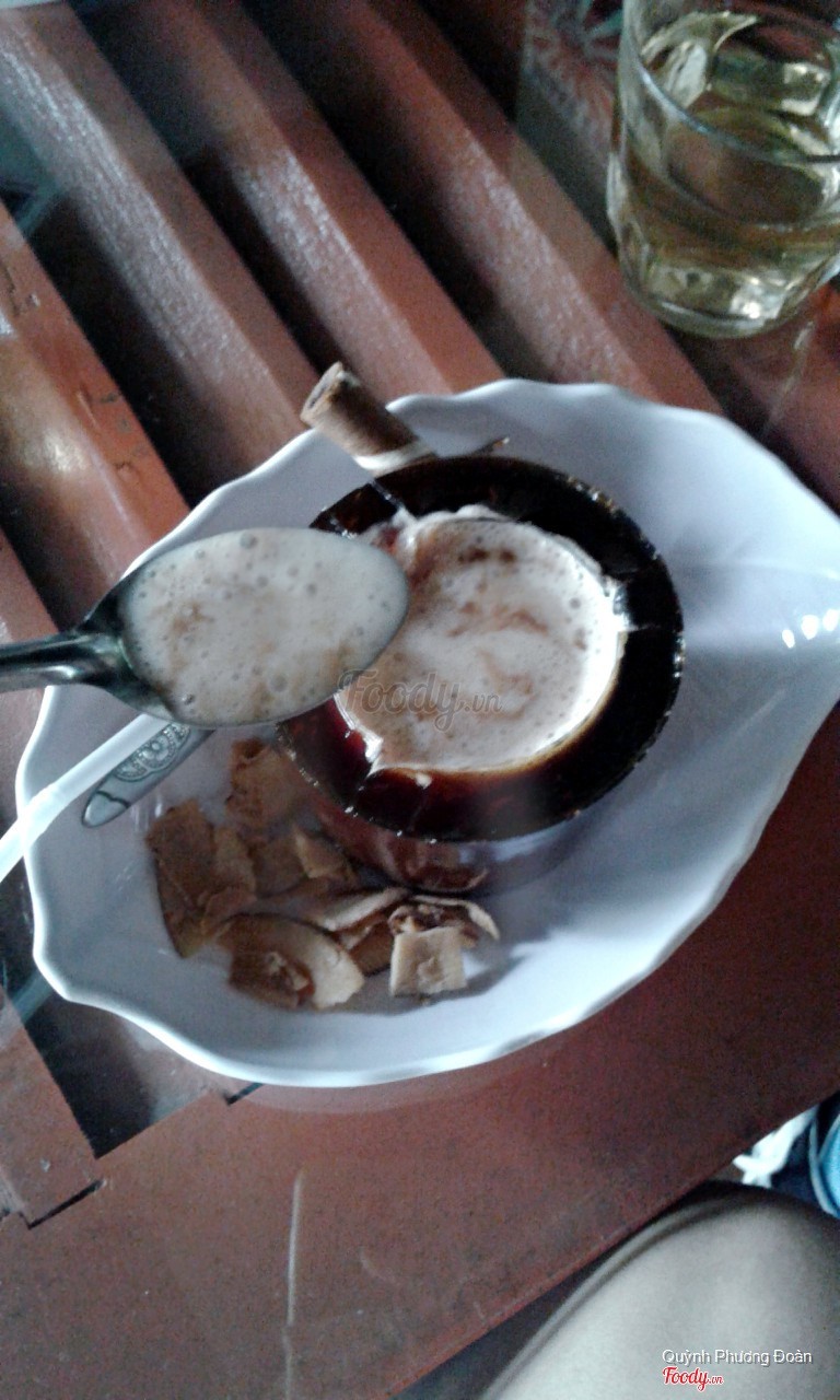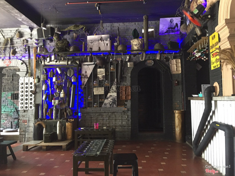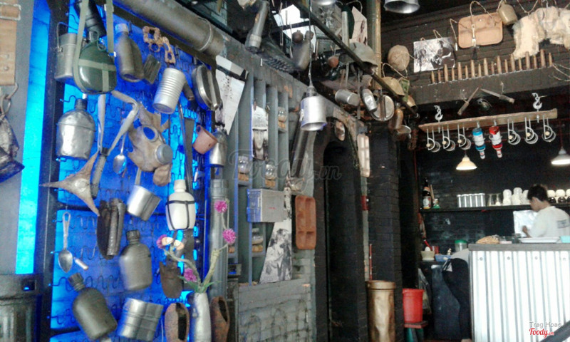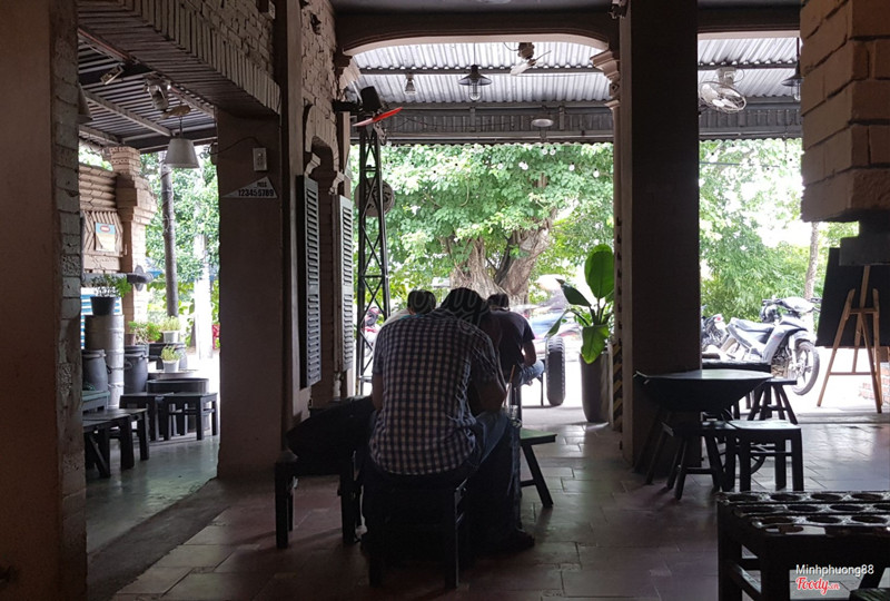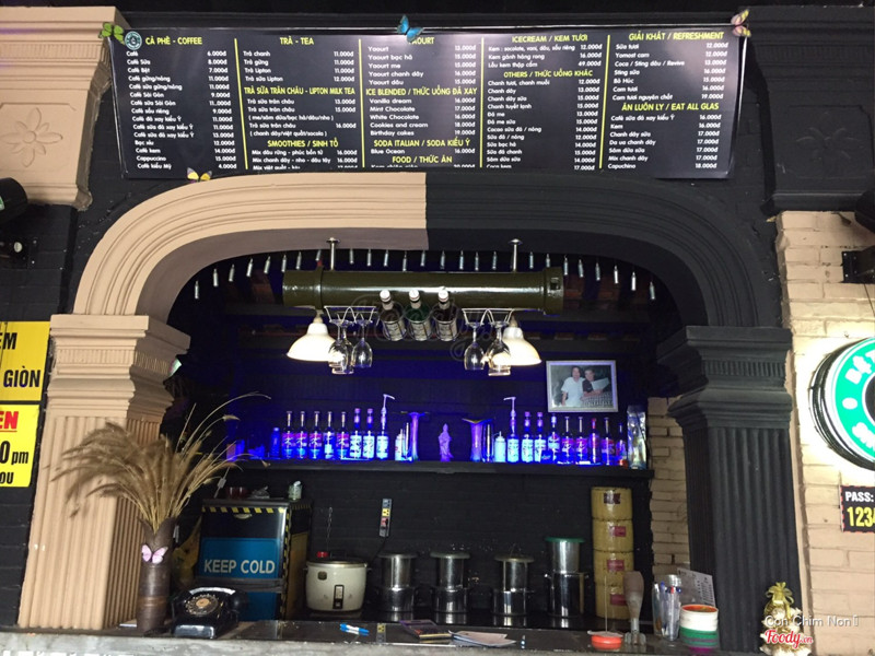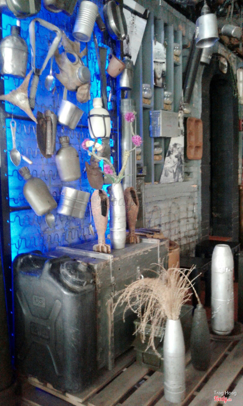 Ghé cafe vào buổi trưa, lúc đó trời còn nắng nóng, trưa thì tất nhiên chả có ai ngồi cả ngoài bàn tụi mình. Quán trang trí khá độc đáo, bày trí các vật dụng thời chiến tranh ngày xưa, rất độc đáo. Không gian cũng khá thoáng và rộng rãi, nghe nói buổi tối thì quán khá đông khách. Về đồ uống thì mình kêu cafe đen, phúc bồn tử đá xay thì phải thì thấy đồ uống cũng bình thường không có gì đặc sắc. Được cái ly khá xinh xắn, nhỏ nhỏ vừa tay trông như quả na í. Ly cafe đen cũng xinh luôn. Nhân viên phục vụ nhanh nhẹn. Chỗ để xe đối diện quán cũng rất rộng rãi. Quán có view ngoài đường nhìn ra hồ tịnh tâm cũng rất thoáng mát. Thích hợp kiểu tụ họp bạn bè tám chuyện 👍🏻 ...Xem thêm