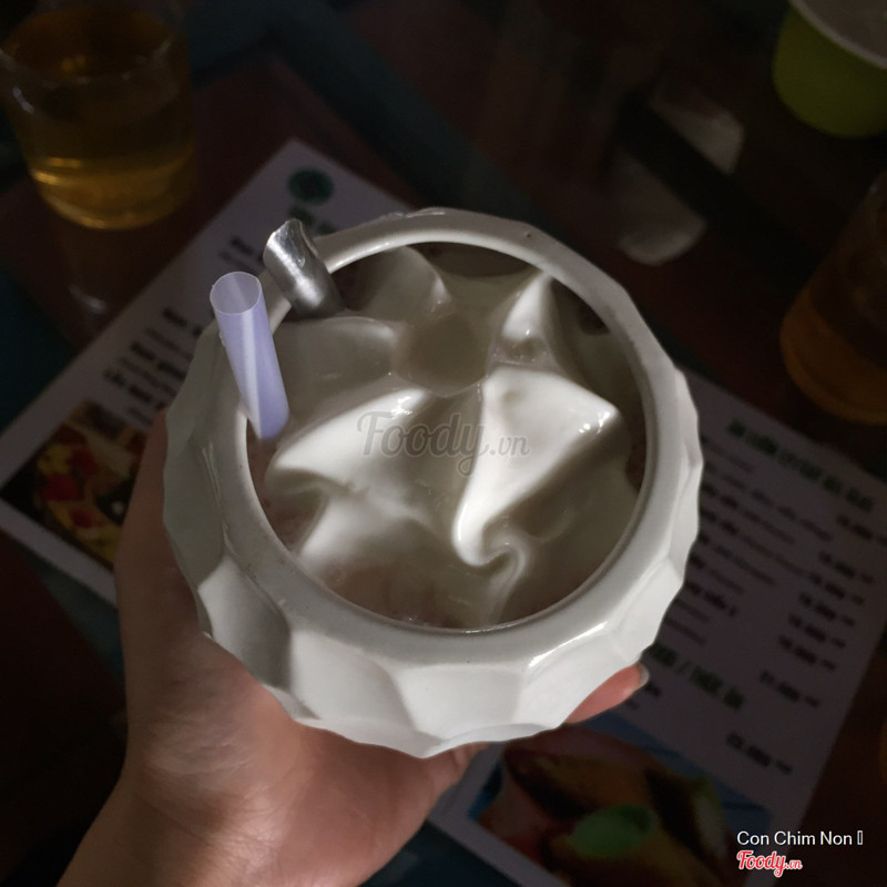 Quán đối diện hồ nên thấy thoải mái. Mình rất thích không gian của quán. Thích xem những vật dụng thời chiếm tranh. Gọi 2 ly chanh dây sữa và capuchino loại ăn luôn ly. Ly có thêm gừng nên ăn đỡ ngán. Thêm 1 phần kem chiên. Ăn ngon nhìn hấp dẫn. Kem chờ hơi lâu thôi :) ...Xem thêm