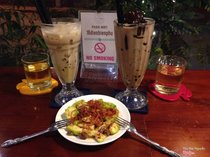 7.8Sanh CafeQuán nằm ở đầu đường Điện Biên Phủ, khá dễ tìm. Không gian quán trang trí đẹp, nhưng hơi bị và chật. Nước ở đây khá ổn, mình kêu 4 ly và thấy 2 ly uống ngon nhất là sinh tố cam nha đam, sinh tố đào. Còn ly socola đá xay vị dừa thì béo quá, uống vào k có vị ngọt mà béo làm nhanh ngán, và 2 ly sinh tố bạc hà thì không có gì đặc sắc hết. Lớp kem ở trên khá dở, ăn cứ bị bở như kem bánh kem, nên khắc phục lớp kem thì sẽ ngon hơn, riêng mình thì thấy ly cam nha đam khá ngon. Nhân viên rất nhiệt tình, vui vẻ. Thường xuyên để ý để châm trà cho khách. Quán còn cho quét e- card nữa nên mình sẽ ghé lại quán khi có dịp và thử loại nước khác. ...Xem thêm