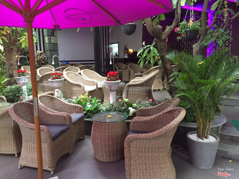 8.2Bách Viên CafeQuán nằm trên mặt tiền đường 2/4 luôn, biển hiệu quán rất to và rõ nên rất dễ tìm nhé. Mặc dù tọa lạc trên đường đông xe cộ ồn ào nhưng vì quán được xây thụt vào bên trong nên ngồi rất yên tĩnh, cứ như tách biệt với thế giới bên ngoài vậy :)). Ở đây chỉ có khu ngoài trời, không có khu máy lạnh. Không gian cây cối nhiều ngồi mát lắm, có cả thác nước nữa. Menu nước cực kỳ phong phú và đa dạng luôn, trong menu có cả hình đồ uống nhìn đẹp mắt lắm lận. Mình gọi Chocolate Blend (40k), Matcha blend with jelly (45k) và Trà đào sả (32k). Ly nào cũng được trình bày rất đẹp mắt, có điều mình thấy cây dù trang trí hơi bị lệch tone một chút :)). Chocolate blend uống vị hơi bị nhạt nhưng vẫn vừa miệng. Matcha thì vị rất ngon, đậm mùi matcha, có thạch vị matcha trong đó nữa, nghe nói là quán cũng nhập loại thạch matcha này giống bên Highlands luôn. Trà đào sả uống giải khát cũng được lắm. Nhìn chung mình thấy giá đồ uống cũng không gọi là mắc lắm. Nhân viên phục vụ nhiệt tình và nhanh nhẹn. Chắc chắn mình sẽ còn ghé lại. ...Xem thêm