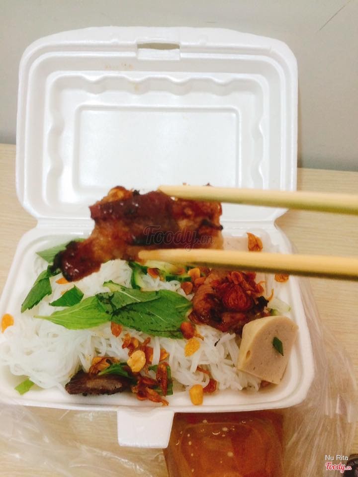 7.2Bún thịt nướng-Lần trước ghé quán này ăn thử bánh cuốn giờ quay lại ăn bún thịt nướng xem như thế nào. - Quán vẫn bán ngay lề đường ngô đức kế sát bên cạnh chè cứu đói luôn. - phục vụ vui vẻ lắm mà làm cũng nhanh nữa, không để khách phải chờ lâu. Mình thấy đa số mọi người tới mua về không à chứ không có ngồi lại ăn đâu nên thấy quán có vẻ vắng - giá bún thịt nướng với bánh cuốn vẫn bằng giá nhau là 15k/ hộp, mới đầu mình tưởng giá bún chắc sẽ cao hơn vì thấy cô bỏ tới 3 xiên thịt lận nhưng lúc tính tiền vần 15k. - thịt ướp mềm vừa ăn với ăn rất ổn. ...Xem thêm