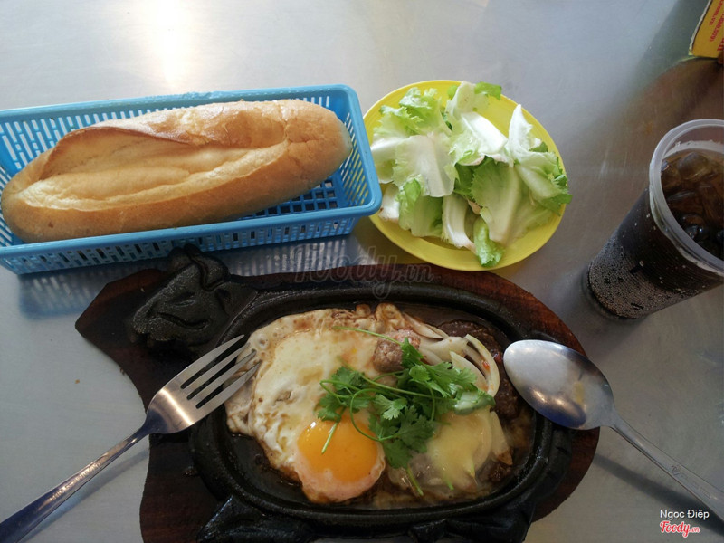 7.0Bò Né 3 Ngon - Bò Quanh Lửa Hồng - Đường 2 Tháng 4Quán bò né 3 ngon này lâu rồi mình mới ghé ăn lại, bảng giá vẫn không thay đổi về các phần bò né. Mình chọn ốp la 20k 1 phần với 2 trứng ốp la kèm với pa tê, chả, xúc xích, sốt béo, .... nêm thêm tí hành tây bào mỏng và ngò rí. Ăn cùng 1 ổ bánh mì được nướng trong lò nướng nên luôn nóng giòn. Không thấy quán miễn phí nước ngọt, hoặc 1 số quán khác có thì cũng rất ít nước ngọt nên thường phải gọi thêm nước uống. Quán có bán thêm các loại nước ngọt có ga . ...Xem thêm