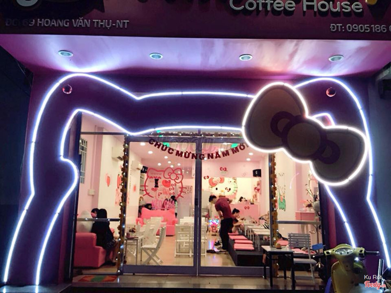 7.4Hello Kitty Coffee House Nha TrangKitty kitty kitty.!! Nếu bạn là tín đồ của những cô nàng Kitty xinh đẹp, nhí nhảnh thì mau mau đến quán! Mọi thứ ở đây đều có màu hồng đặc trưng của cô mèo này: bàn, ghế, nệm, ly nước, gấu bông, background...mọi thứ đều được in hình và trang trí hoạ tiết "Hello Kitty" vui nhộn và đẹp mắt. Không thể quên nói đến những ly đồ uống mát lạnh và thơm ngon! Đồ uống ở đây giá cả hợp lý, nhân viên thân thiện, không gian lung linh, chỗ ngồi thuận tiện! ...Xem thêm
