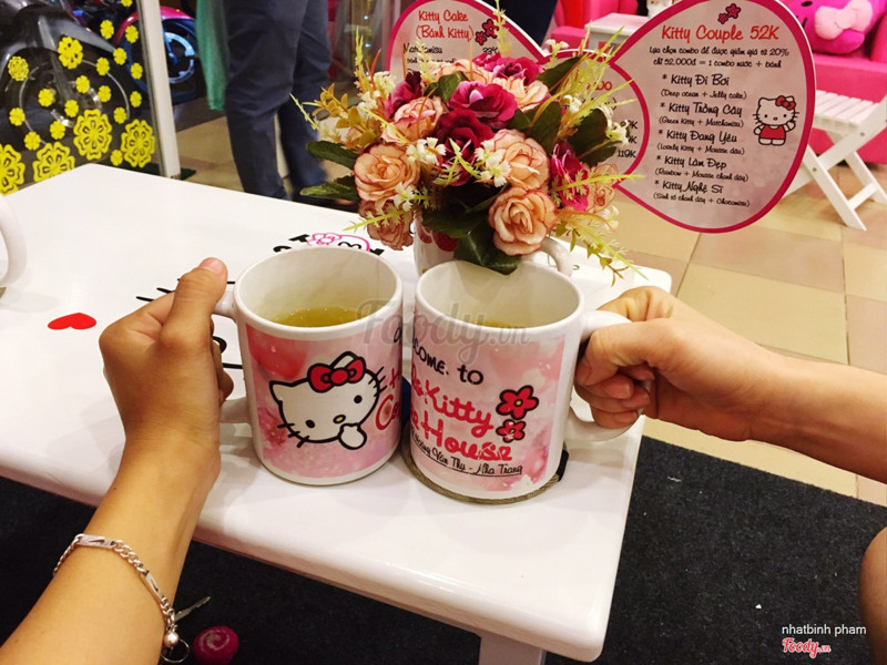 7.4Hello Kitty Coffee House Nha TrangQuán được trang trí với tông màu hường trùng với màu của con mèo Hello Kitty. Mọi thứ trong quán hoàn toàn liên quan đến Hello kitty luôn, từ cái menu, cái gối tựa, ly nước, bàn và ghế, với cả trên tường cũng được in hình 2 con mèo ấy nữa, đặc biệt là có gương soi và máy sấy tóc cũng có hình hello kitty rất cuteee. Quán rộng rãi và rất thoáng. Nhân viên được mặc đồng phục áo của hello kitty rất dễ thương với tính tình cũng thân thiện nốt. Giá cả vừa phải phù hợp với các bạn trẻ từ 20k đến 45k là được ly trà sữa hoặc matcha tuyệt vời. Quán nằm ngay mặt đường, được trang trí đèn bên ngoài rất sáng nên rất dễ nhìn thấy. ...Xem thêm