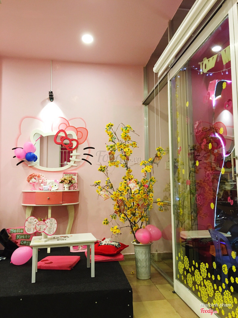 8.0Hello Kitty Coffee House Nha TrangKitty kitty kitty.!! Nếu bạn là tín đồ của những cô nàng Kitty xinh đẹp, nhí nhảnh thì mau mau đến quán! Mọi thứ ở đây đều có màu hồng đặc trưng của cô mèo này: bàn, ghế, nệm, ly nước, gấu bông, background...mọi thứ đều được in hình và trang trí hoạ tiết "Hello Kitty" vui nhộn và đẹp mắt. Không thể quên nói đến những ly đồ uống mát lạnh và thơm ngon! Đồ uống ở đây giá cả hợp lý, nhân viên thân thiện, không gian lung linh, chỗ ngồi thuận tiện! ...Xem thêm