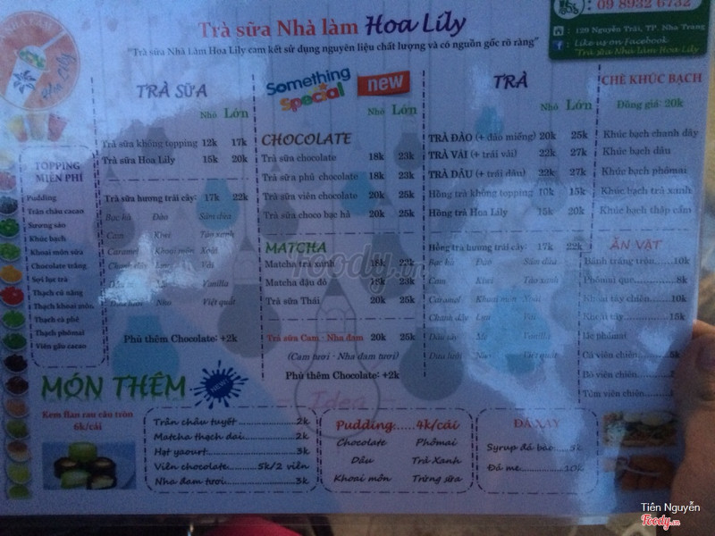 7.0Trà sữa hoa lily-quán trà sữa này mở cũng lâu rồi, nhưng vì chỗ không được rộng nên thấy khá vắng khách. Trà sữa ở đây có nhiều loại, nhiều vị tuỳ theo sở thích của mỗi người mà gọi thôi. - Vì quán khá vắng nên mỗi lần tới đều ko thấy chủ đâu, toàn phải kêu chủ ra rồi mới làm cho mình, nhưng được cái phục vụ nhanh, thân thiện. - Giá trà sữa cũng dao động từ 18k cho ly nhỏ tới 30k ly lớn nếu thêm thạch hoặc pudding. Đa số mọi ngươi đều mua mang về chứ không ngồi lại uống. - Mình uống trà sữa ở đây mấy lần rồi thấy cũng rất ok, có dịp các bạn nên thử. ...Xem thêm