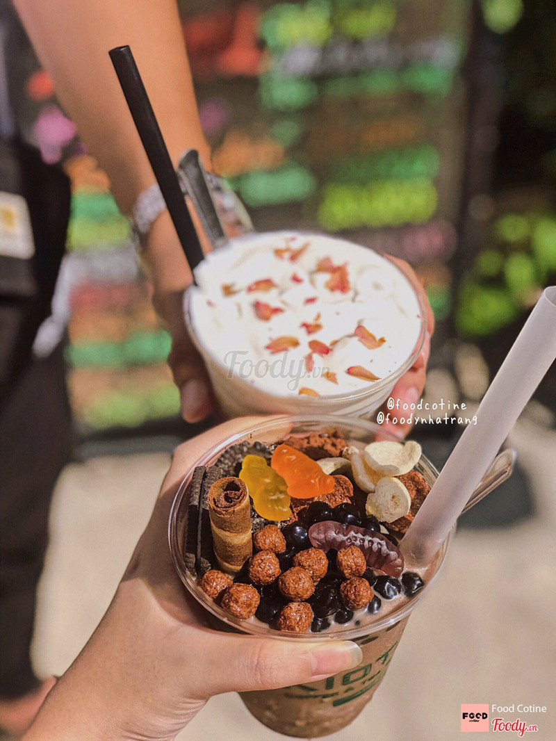 8.2Kiot 79 - Coffee & Tea ExpressĐi đâu gần gần khu đại học nha trang thì tha hồ mà quán xá ăn uống, cà phê không luôn á ><. Đi ngang thấy quán này để biển ở ngoài có món milo đá xay thấy là lạ nên tấp vào làm hơi xem sao :3. Menu trông sơ bộ cũng như mấy quán bán nước ún zị thui, từ cà phê, đá xay, sinh tố,.. à có mấy món lặt vặt ăn nhâm nhi nữa. Tui thì order milo đá xay và trà sen milk foam, ra nước hơi lâu nhen (lúc đến có mình tui hà) Đầu tiên khá khen món trà sen ở quán, trà ngọt thanh rất vừa phải, đậm vị, có hạt sen mềm vừa nhai, lớp milk foam trên cùng phải gọi là đỉnhhhhh, ly có 30k hoy mà lớp milk foam cũng dày á chớ, milk foam ngọt ngọt có hơi tí mằn mặn, rất đậm đặc lun nhen, on top rắc hoa khô thì phải :))), cơ mà ăn được lun nhen, ai hong thích có thể bỏ ra nà 🤣🤣. Milo đá xay tui thấy bình thường, hong ưng mấy, ngoại hình thì đầy đặn trông xinh xắn nà, topping có bánh ngũ cốc, trân châu đen, kẹo dẻo, oreo và bánh quế. Milo tui chưa thấy đậm đà lắm, ngược lại thì hơi nhạt và khá ngọt nên cảm giác ngán nhanh (bỏ lại 1/3 vì hơi ớn) :(((((. Cơ mà nói gì chớ tui thấy giá cả sinh viên lắm nhaa, sẽ có dịp thử món khác nè View quán lạ lạ nè, trông kiểu vintage í, decor bàn ghế lạ lạ hen ^^. Quán bật nhạc nhẹ nhàng chill, à ko có máy lạnh nhen, vô ngồi bật quạt tí là mát nè ...Xem thêm
