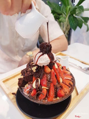 8.6THA HỒ CHỤP CHOẸT VỚI ĐỊA ĐIỂM XINH XẮN THEO CONCEPT HÀN XẺNGKhá khen cho quán vì sự đầu tư cho không gian xinh xẻo ntn 🥰. Không gian khá rộng cả trong và ngoài trời. Trang trí theo concept Hàn mà theo hướng basic với màu chủ đạo trắng-hồng nên xinh xắn quá trời. Vô đây mà đi cùng với ai dơ đth lên biết chụp hình thì điện thoại có mà đầy dung lượng :))). Nhìn chung menu khá đa dạng, nhất về bingsu (nhìn muốn hoa cả mắt), có cả bánh toast và trà sữa nước uống các kiểu. Tui gọi 1 bingsu trà sữa full topping size M (47k), 1 toast matcha (49k) và 1 caramen trân châu đường đen (25k). Giá các món khá mắc nhưng vì không gian quán và mặt bằng nên thui cũng oke. Nhìn ngoại hình ban đầu của các bé đồ ăn thì cũng có bùn trong lòng 1 chút :(, sao caramen với bingsu hổng giống trong ảnh gì hết trơn, nhất caramen á, nhìn caramen nó nát như điểm thi của tui vại, đã thế còn dùng trân châu 3Q chứ hôn phải trân châu đen nữa :( mà phải công nhận là caramen ăn zô nó ngon, nó béo gì đâu, tại mềm quá nên bỏ vô mồm là tan chảy luôn, trân châu cũng có vị đường đen. Bingsu trà sữa full topping trang trí cùng kem việt quất, gắn vài bánh ngũ cốc Kokocrunch xung quanh và đính miếng bánh brownie trên cùng, topping để riêng có thạch củ năng, thạch sữa, trân châu trắng và thạch lá dứa, rưới cùng là trà sữa lun. Bingsu ngon, tui thít, đậm vị trà sữa, ăn mát*** kem việt quất ngon, bánh brownie ngon nữaaaa, có trà sữa rưới lên cùng đc cho nhiều lắm nên chắc xin chị nv ống hút rồi uống như trà sữa full topping lun 🙄 Bánh toast xinh xinh đc phết lớp phomai, trang trí cùng kem trà xanh, đậu đỏ, thạch trà xanh, mochi và sốt trà xanh beo béo. Túm lại cũng oke, thạch trà xanh tưởng nó béo mà hông thấy gì hớt, thấy đc vị trà xanh, kem trà xanh cũng zị, nhìu vị trà xanh qá, có sốt trà xanh béo ngon lèe, còn mochi tui hỏng thích ăn nên chừa ra (ban đầu nhìn tưởng tóp mỡ đó :)))) ...Xem thêm