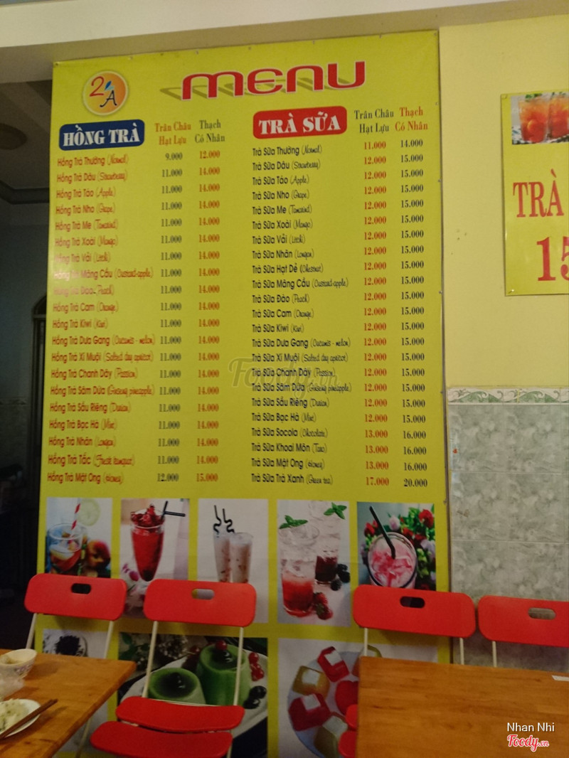 7.0Ngân 2A - Trà Sữa Thạch Có NhânLần đầu mình mua trà sữa ở đây. Quán nằm gần góc Huỳnh Thúc Kháng-Nguyễn Trãi, cũng dễ tìm lắm nhưng mà hiện giờ gần quán đang xây dựng nên khói bụi, xe trộn cát bự chảng gần đó. Quán nằm trong nhà, cũng không bí lắm. Menu của quán chủ yếu là trà sữa, hồng trà. Mình gọi 1 phần trà sữa socola và trà sữa trà xanh thạch có nhân. Socola 13k/li còn trà xanh 20k/li. Đồ uống cũng khá vừa miệng, không có gì nổi bật so với những nơi khác mình từng uống. Chị nhân viên vui tính, phục vụ nhanh nhẹn, nhiệt tình. ...Xem thêm