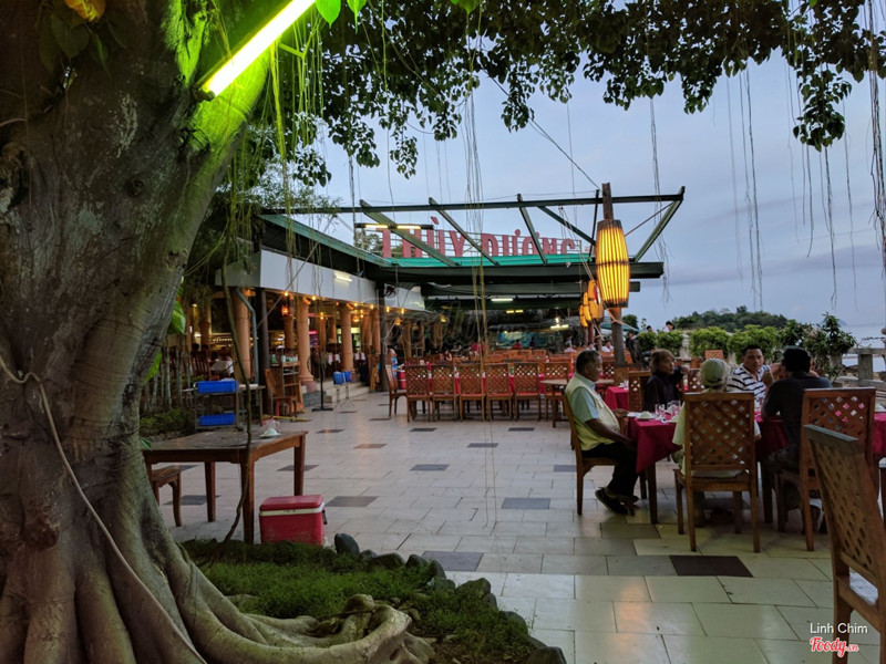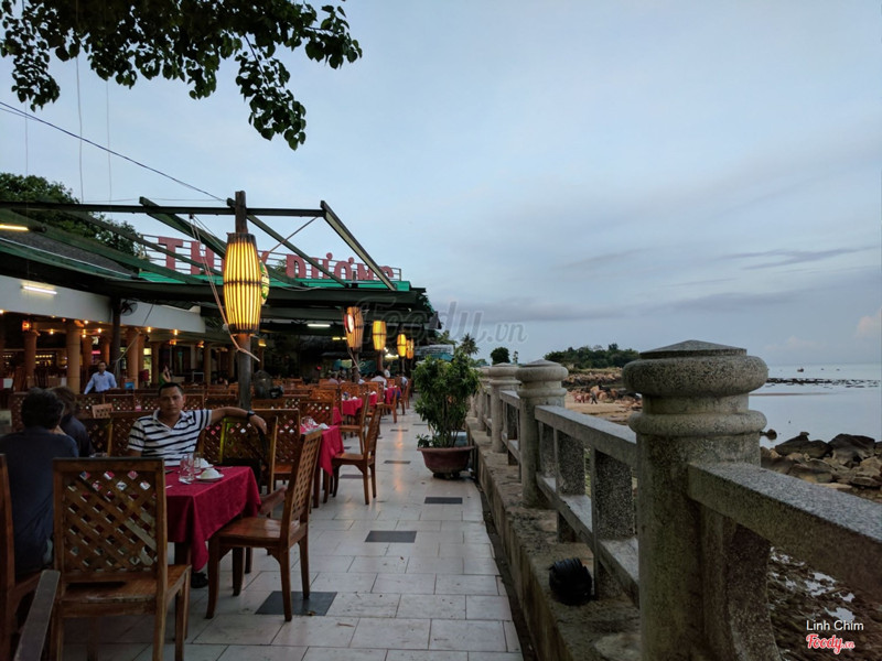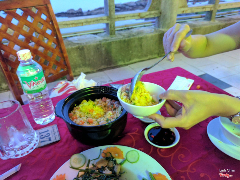 7.8Quán view biểnPhía ngoài quán là khu cà phê. Đi qua một con đường nhỏ, có nhiều bóng cây mới tới khu nhà hàng. Khu này có view nhìn ra biển, vừa ăn vừa ngắm biển còn gì thú vị bằng. Buổi trưa cũng đông khách, đa số là khách đoàn. Quán bán nhiều món, giá cả khá mắc nhưng mình thấy không ngon lắm, ướp không đậm đà. Thịt heo rừng nướng hơi trắng, nhìn không hấp dẫn, vị cũng nhạt nữa. Nước lẩu cũng vậy, không dậy mùi lẩu, chỉ giống như nước canh thôi. Về phần gỏi mực thì tươi, được nhất trong mấy món. ...Xem thêm
