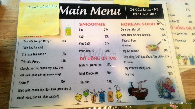 7.4Poro Tea - Drinks & Korean FoodPoro Tea - 1 tụ điểm ăn vặt hút teen ở khu Cửu Long. Menu khá phong phú, từ các món ăn Hàn Quốc đến các loại đồ uống đang HOT như Smoothie, Soda, Trà đào, Matcha đá xay vv... 🔸Không gian khá thoáng, ngồi cũng thoải mái. Wifi đầy đủ luôn! 🔸Đồ ăn ở Poro khá bắt mắt nhưng đáng tiếc chỉ dừng ở mức tạm được. Cơm trộn kim chi hơi mặn, quán nên gia giảm lại. Trái ngược với đồ ăn, đồ uống khá okey. Rất đậm đà, trang trí đẹp. 🔸Giá cả đồ uống rất dễ chịu. Ngoại trừ đồ ăn! 🔸Các bạn phục vụ dễ thương, làm món cũng nhanh. Duyệt! Sẽ ghé lại để ủng hộ các bạn! ...View more