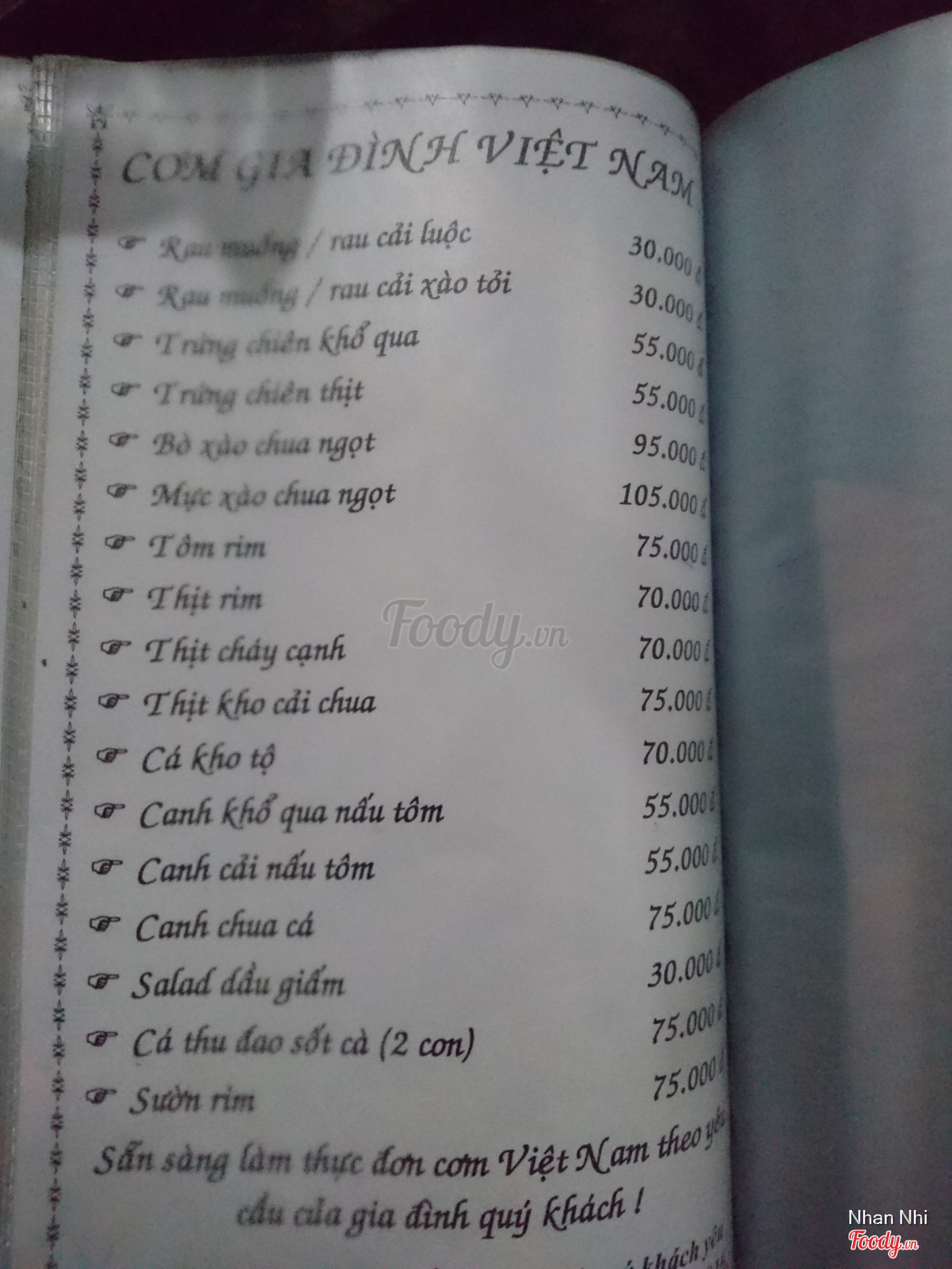 Ghi chú đặt bàn